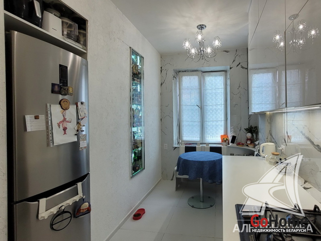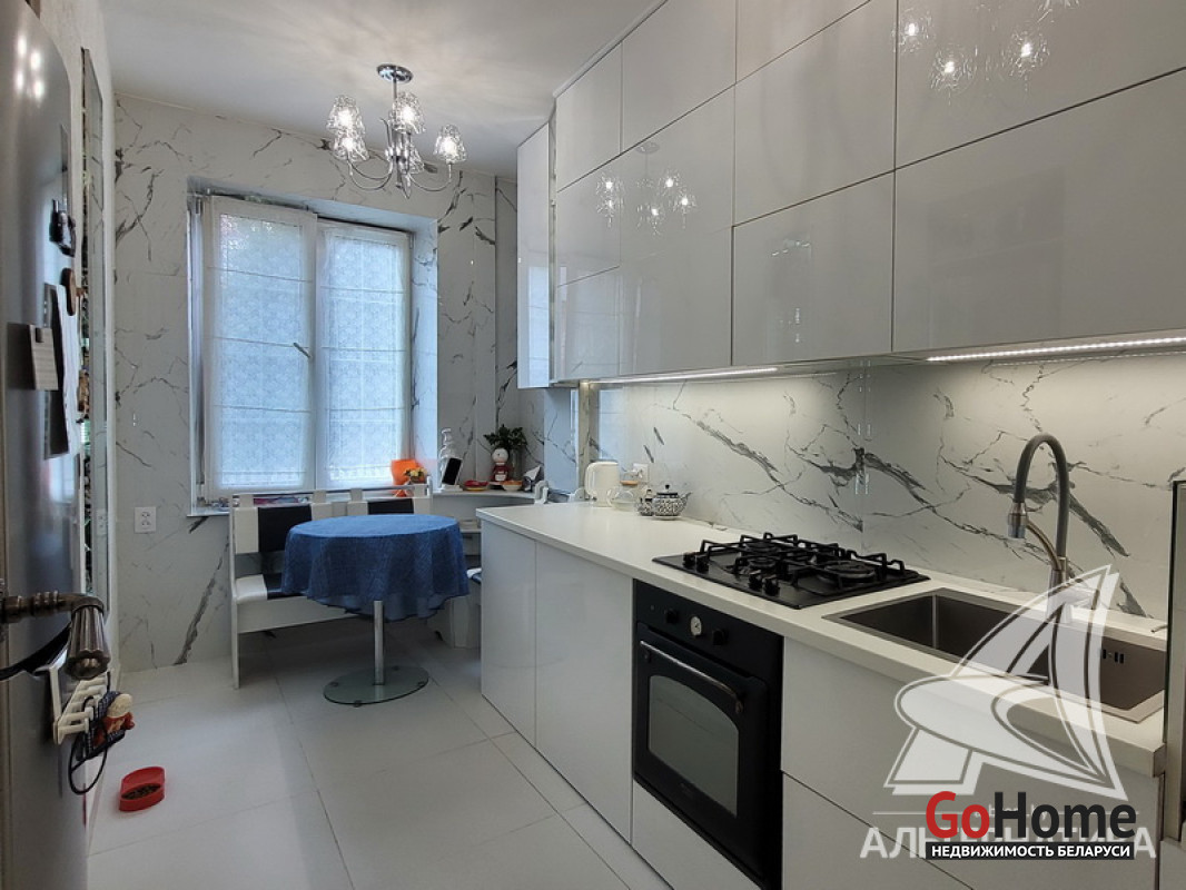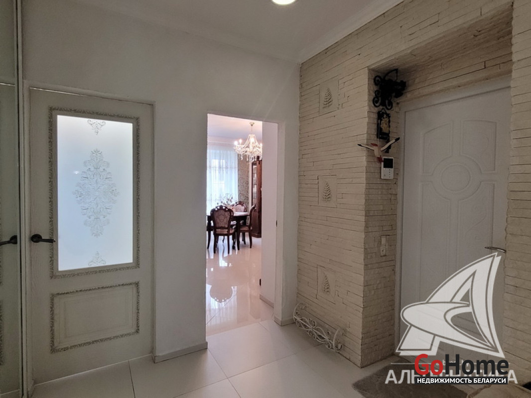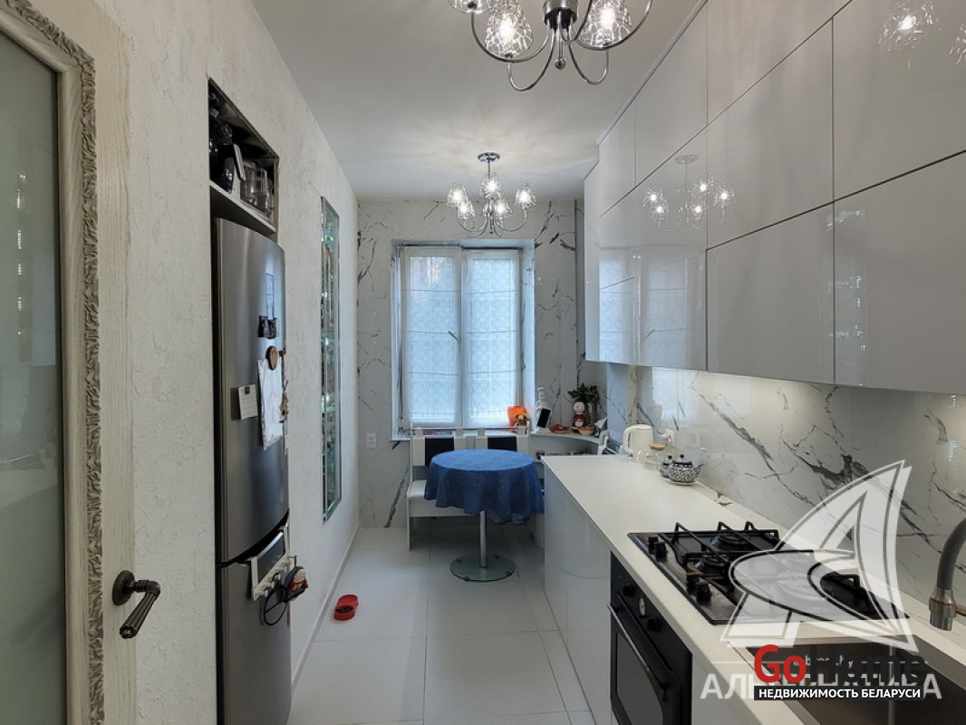 3-комнатная квартира, г. Брест, ул. Зубачева, 1956 г.п., 1 / 2 кирпич, 65,7 / 65,7 / 46,0 / 8,5, санузел совмещенный, подвал, стеклопакеты с металлическими роллетами, входная дверь металлическая, потолки - лепнина и из гипсокартона, полы - плитка (положена на стяжку), есть подогрев пола, стены - оштукатурены, ошпатлеваны и декоративная окраска, в санузле современная плитка, заменена сантехника, заменен полотенцесушитель, заменены сантехнические трубы, душевая кабина, проведена новая электропроводка, установлены новые радиаторы, кондиционер, телефон, система видеонаблюдения. Кухонный гарнитур, посудомоечная машина Bosh, камин, встроенные шкафы. Квартира с хорошим ремонтом. Квартира расположена на две стороны. Окна жилых комнат выходят во двор. Чистый подъезд. Есть сарай и парковочное место перед ним. Лот - 223375