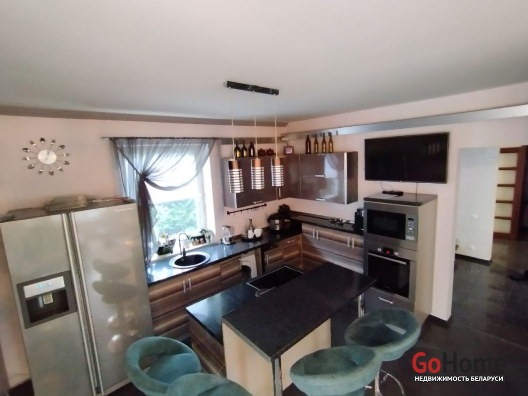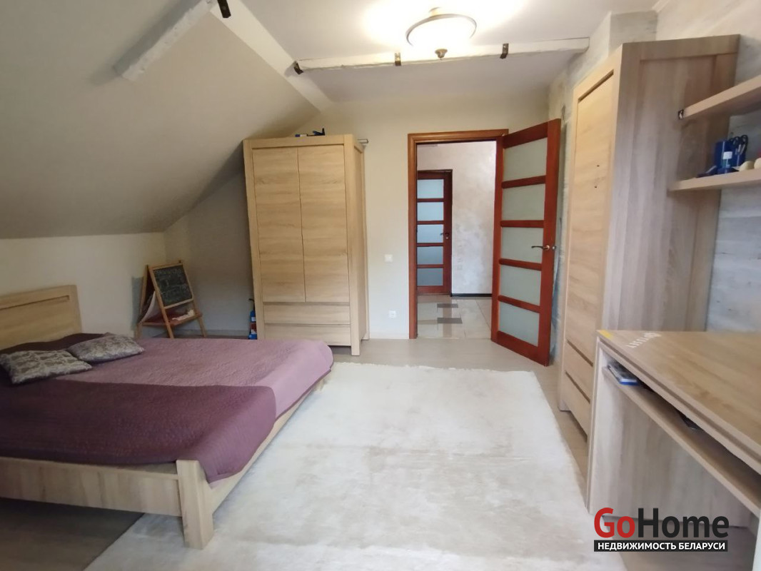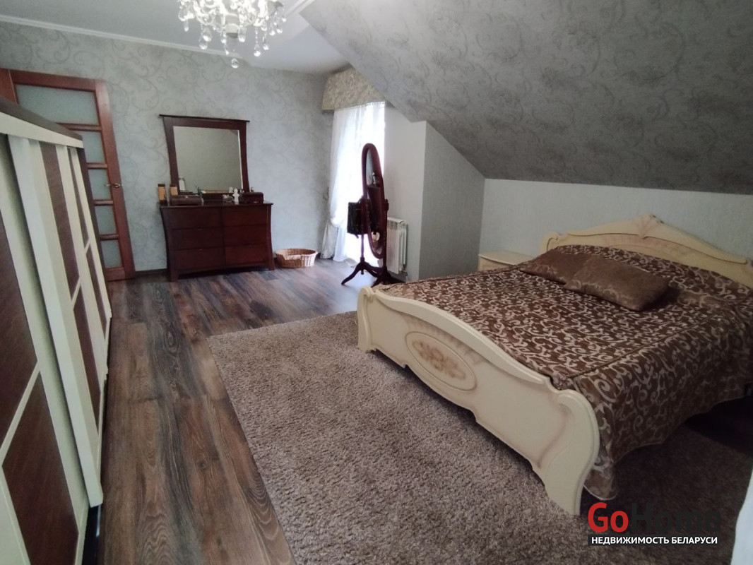 Продается одноэтажный жилой дом с мансардой в микрорайоне Барановичи. Дом 2007 года постройки, общей площадью 152,5 м2, жилая 97,5 м2, кухня 17,1 м2. Дом из силикатных блоков, состоящий из 5 комнат. Оконные проемы - стеклопакеты. Водоснабжение, канализация центральные, отопление газовым котлом. На первом этаже размещены помещения: столовая, оборудованная всем необходимым кухня, санузел, коридор с системой хранения. Мансардный этаж - 3 комнаты и санузел. Дом очень компактный и уютный. Площадь участка – 11,46 соток, на котором кроме дома имеется навес и фундамент для бани (есть согласованный проект), теплицы. Территория ухоженная, зелёная с плодовыми и декоративными деревьями, забор по всему периметру.