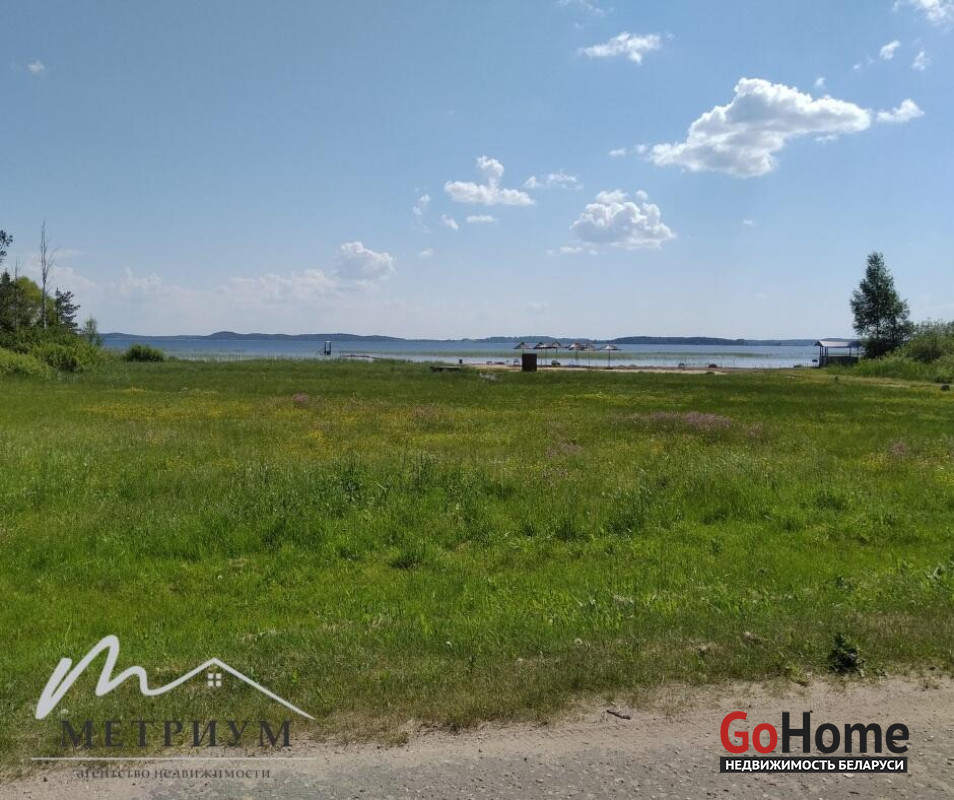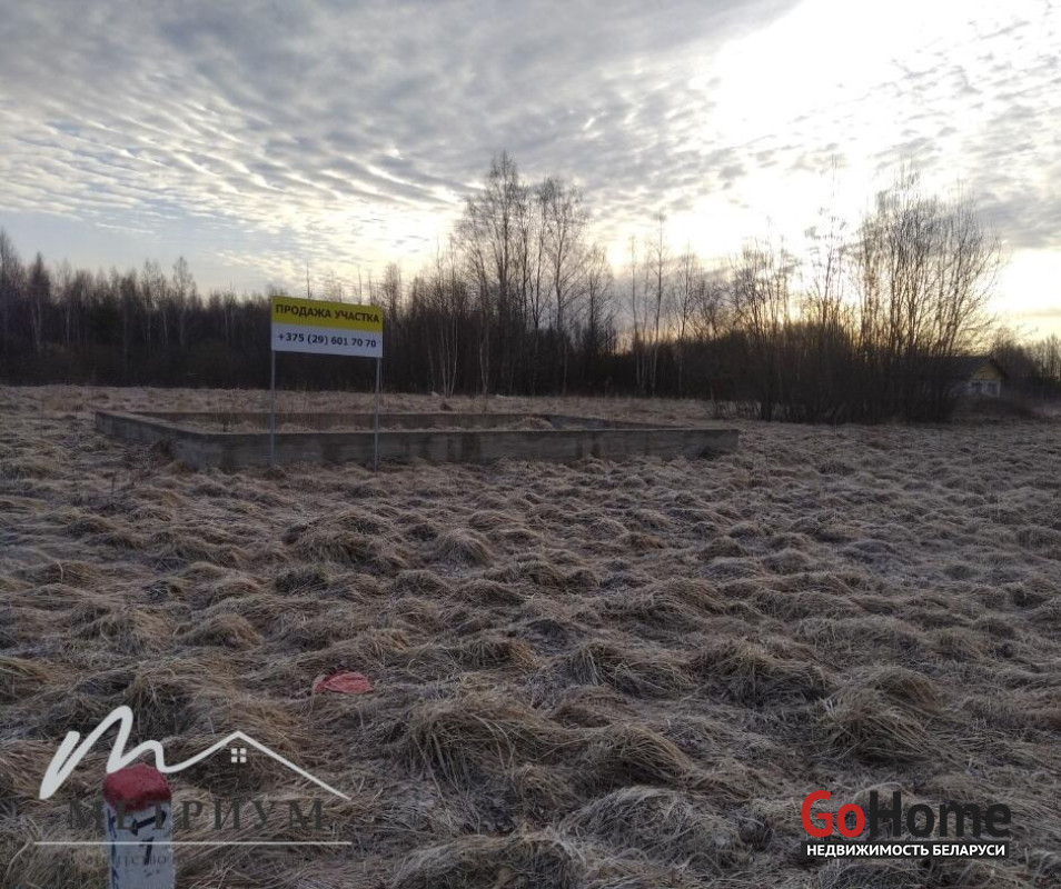 Площадь участка – 24,57 соток. Расположен в д. Красногорка, на первой береговой линии озера Снуд. На участке находится законсервированный фундамент.