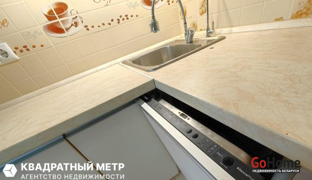 Кухня, с выходом на лоджию, оборудована всей необходимой бытовой техникой: посудомоечная машина, вытяжка, холодильник, духовой шкаф, варочная панель.