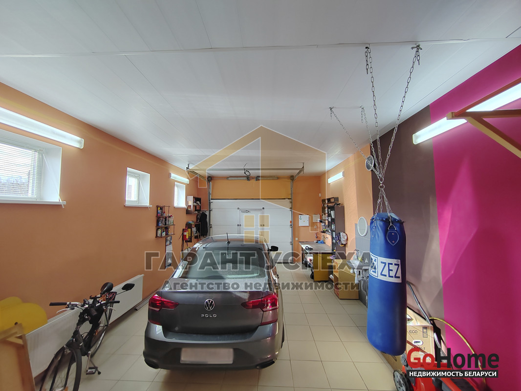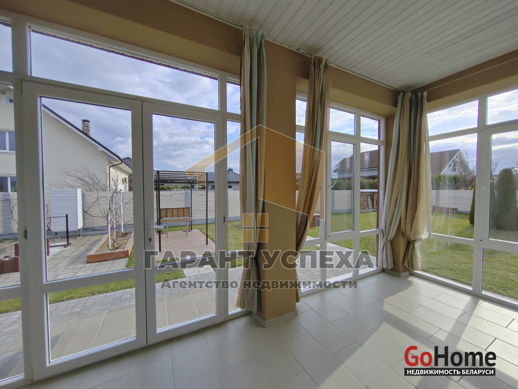 Общая площадь здания составляет 184, кв.м, жилая - 59,1 кв.м. Центральная часть дома по праву отдана просторной гостиной с выходом на застеклённую крытую террасу. Гостиная условна отделена колоннами от полностью оборудованной кухни площадью 15.4 кв.м. Также в доме имеются две жилых комнаты, топочная и два санузла, при этом площадь одного из них, расположенного в эркерной части здания, составляет почти 12 кв.м. Но если Вам площади дома будет недостаточно, в Вашем распоряжении больше 70 кв. метров свободной планировки на мансардном этаже. С правой стороны дома имеется автомобильный отапливаемый гараж (37,8 кв.м) с роллетными воротами и отдельным входом в здание.
