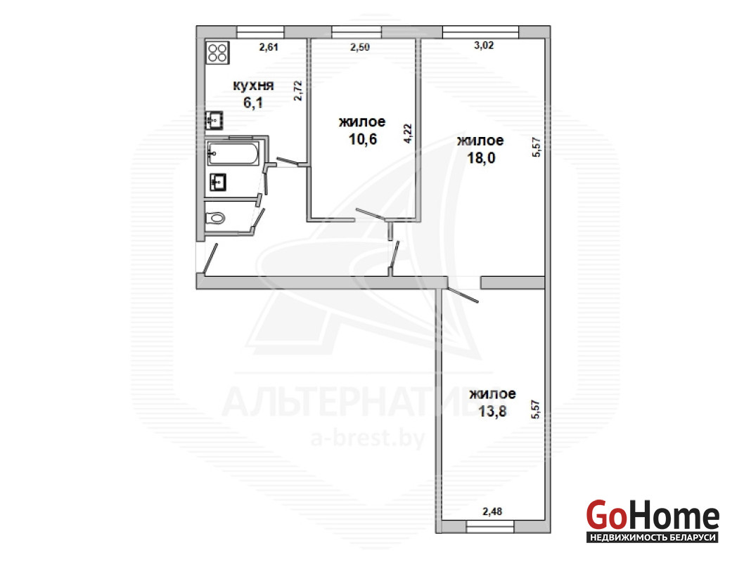 3-комнатная квартира, г. Брест, ул. Гоголя, 1967 г.п., 1 / 5 кирпич, 58,8 / 58,8 / 42,4 / 6,1, санузел раздельный, подвал, деревянные стеклопакеты, потолки - снежка, стены оклеены обоями, домофон. Квартира в жилом состоянии. Отличный вариант для вывода в нежилой фонд. Лот - 260534