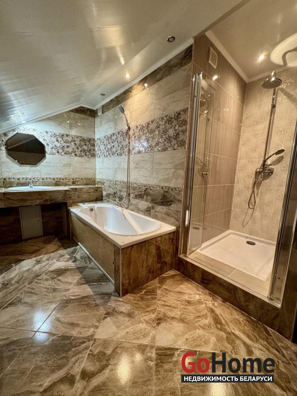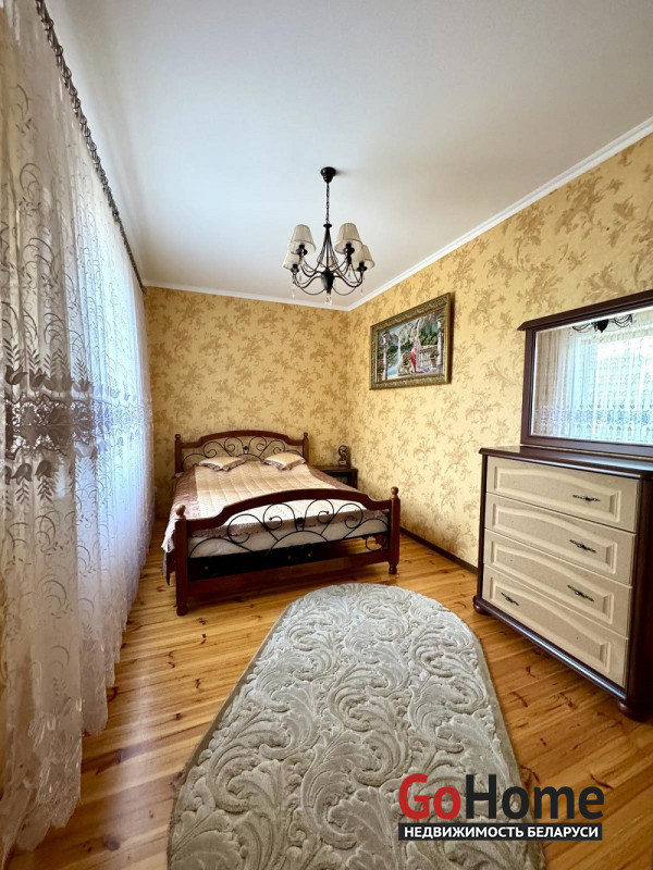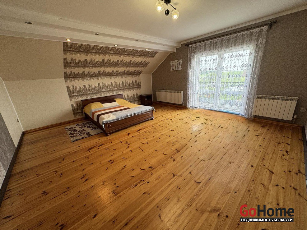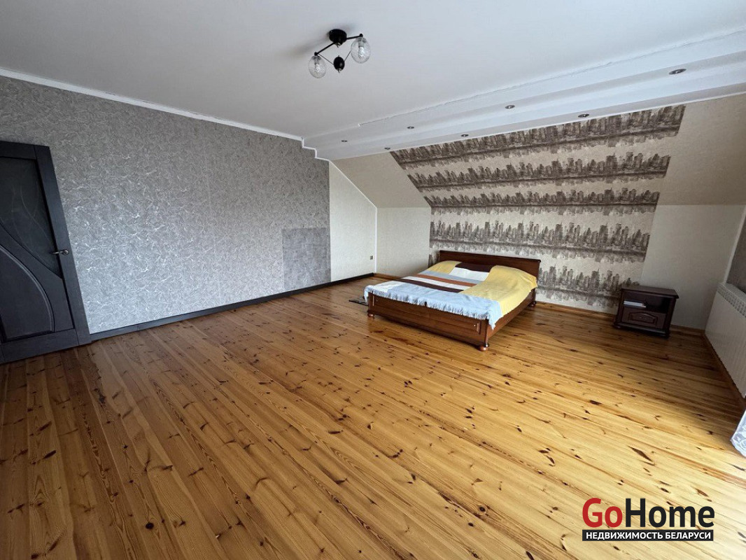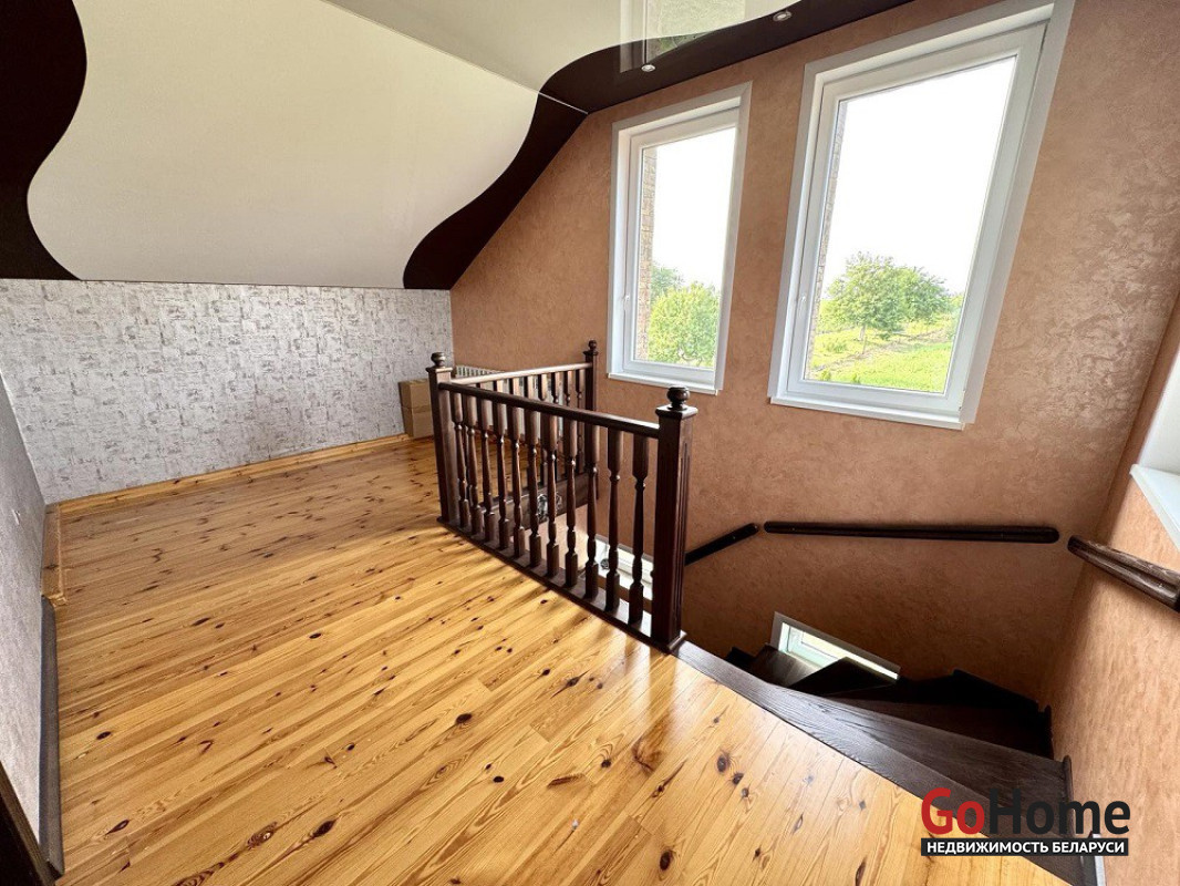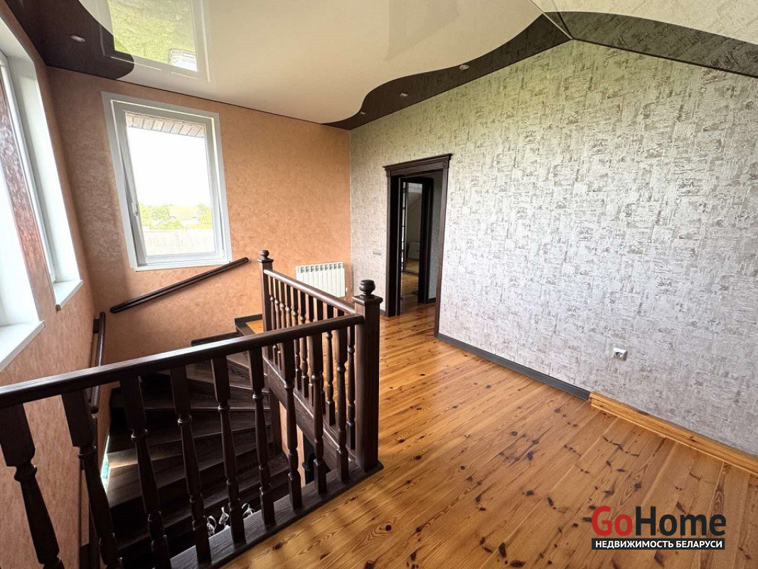 В продаже дом в агрогородке Квасовка, по ул. Мира. Общая площадь 181,7 м. кв., жилого помещения – 61,7 м.кв., кухня – 10 ,4 м.кв. Блочный дом одноэтажный мансардного типа 2006 года постройки, крыша металлочерепица, фасады –декоративный камень, окна ПВХ, входная дверь металлическая. Имеется цокольный этаж, в котором располагается гараж и подвал. Центральное водоснабжение, отопление – газовый котел, канализация – местная. Дом продается со всей мебелью и техникой и полностью готов к проживанию.