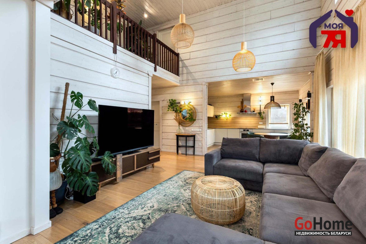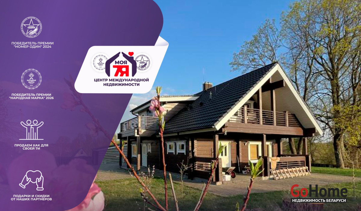 ️ Премиальный дом из финского клееного бруса с натуральной черепицей, 3 спальни, баня, камин, огромная терраса с зоной барбекю на участке 25 соток — в живописной тихой деревне рядом с Минском.