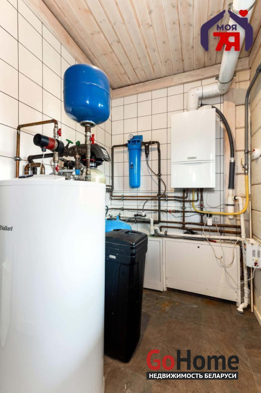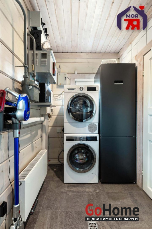 -Прачечная оборудована стиральной и сушильной машинами Bosch. На первом этаже находится спальня, ванная комната. Уникальным элементом является баня на дровах — традиционный русский комфорт, место для расслабления и оздоровления. Котельная‑прачечная — все технические системы организованы в одном месте.