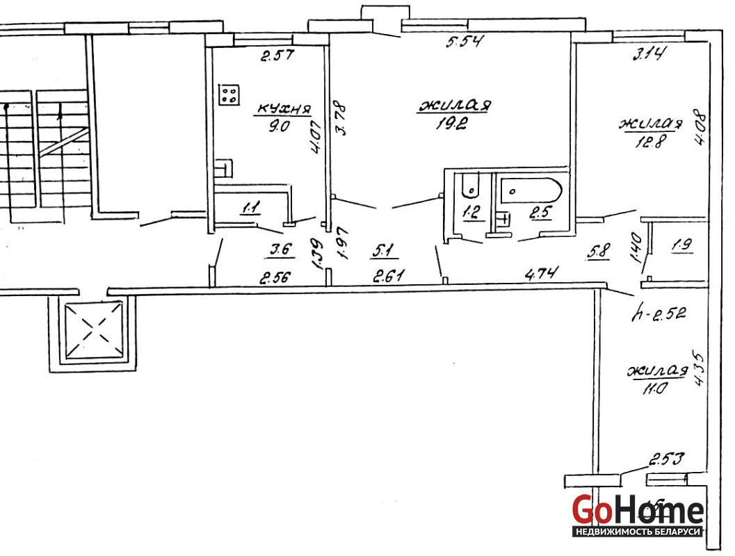 Общая площадь – 73,2 кв. м., жилая – 43 кв. м., кухня – 9 кв. м.