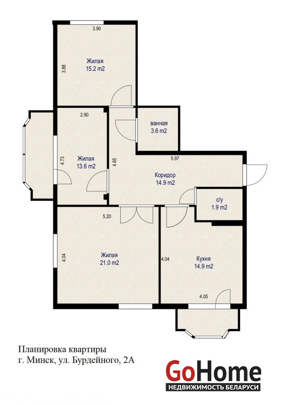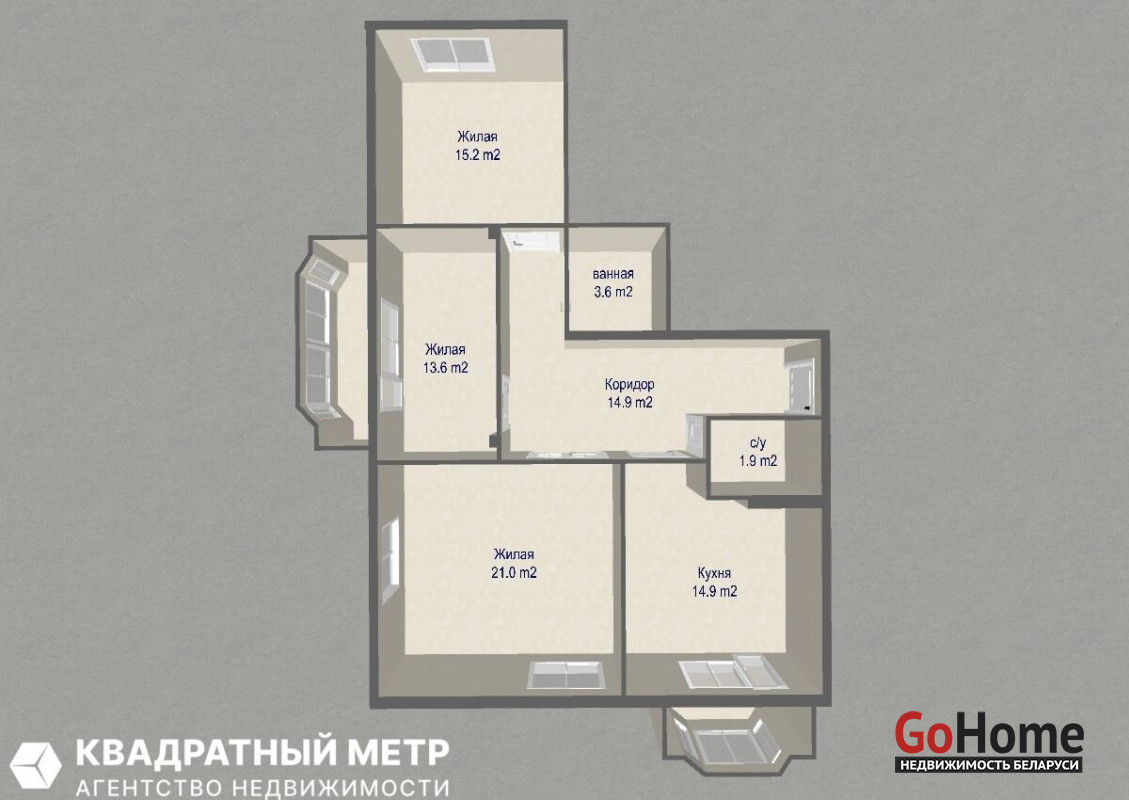 Планировка: комнаты просторные (гостиная 21,0 м2, две спальни по 16,4м2 и 15,2 м2), благодаря окнам на три стороны можно рационально зонировать пространство.