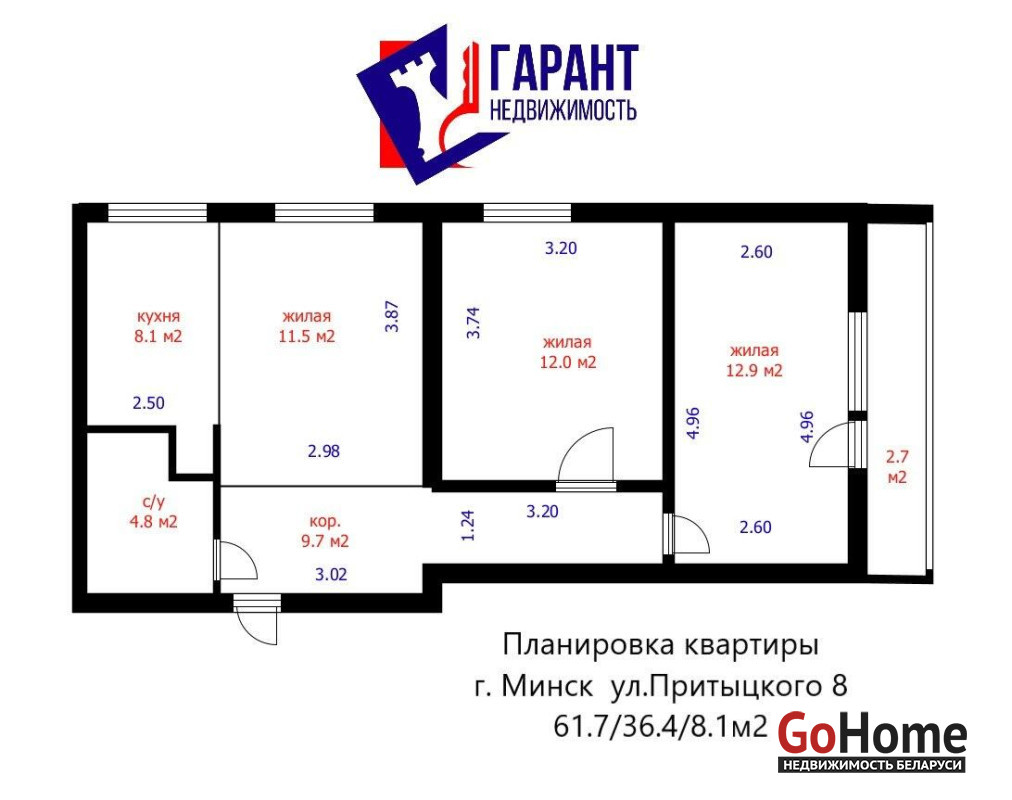Отличная трёхкомнатная квартира во Фрунзенском районе на Притыцкого 8.
