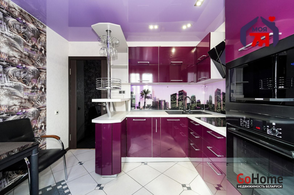 - Кухня оборудована всей необходимой техникой (индукционная варочная поверхность, духовой шкаф, печь СВЧ).