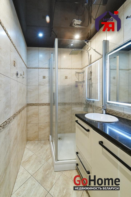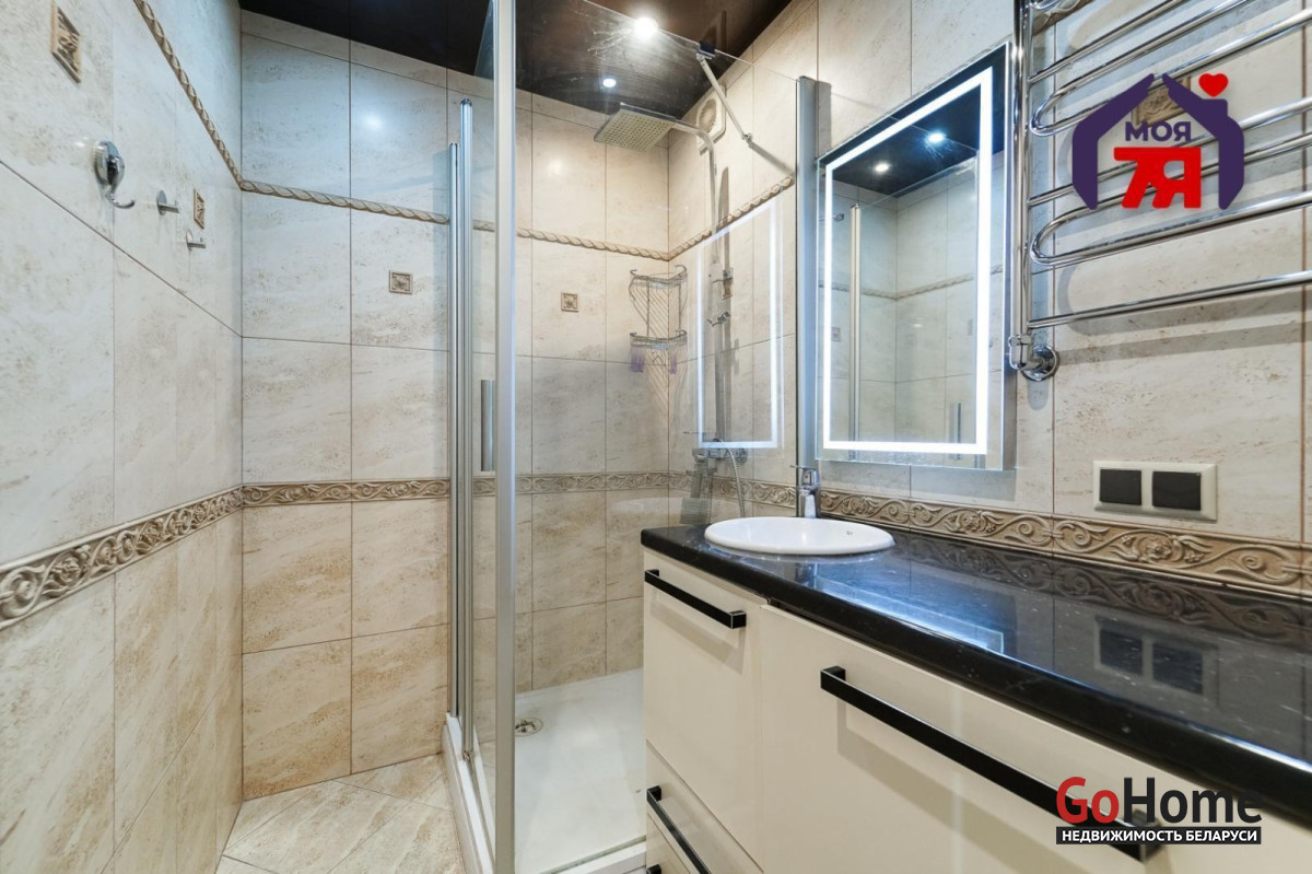 - Квартира с отличным ремонтом: на полу уложен ламинат и кафель, установлена система теплого пола, есть барная стойка - все выполнено со вкусом и качественно.