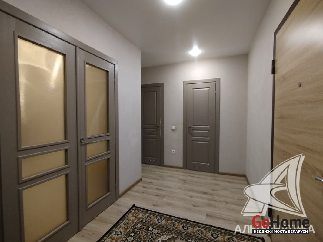 Срочно! 1-комнатная квартира, г. Брест, ул. Дубровская, 2020 г.п., 6 / 9 панель, 43,6 / 41,0 / 17,1 / 9,9, санузел раздельный, лоджия застеклена, стеклопакеты, межкомнатные двери - МДФ, входная дверь металлическая, натяжные потолки (в комнате, в коридоре, в кухне) и снежка (на лоджии, в санузлах), полы (положены на стяжку) - ламинат и плитка (в кухне), стены оклеены обоями, в санузле стальная ванна, в туалете на стенах обои, в ванной стены окрашены, автономный газовый котел, новый электросчетчик, домофон. Вся мебель и техника по договоренности. Квартира с хорошим ремонтом. Чистый подъезд. Один грузопассажирский лифт. Система видеонаблюдения. Установлен шлагбаум. Во дворе игровая детская площадка, машино-место. Лот - 260553