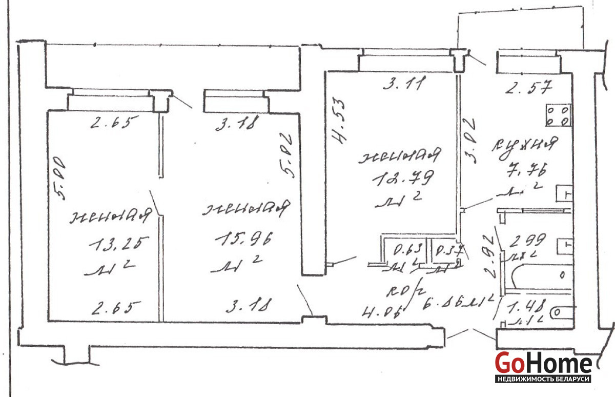 Площадь квартиры по СНБ 65,6 метров квадратных. В жилых комнатах натуральный дубовый паркет в хорошем состоянии, на кухне-ламинат, в ванной и санузле плитка. Лоджия и балкон застеклены.