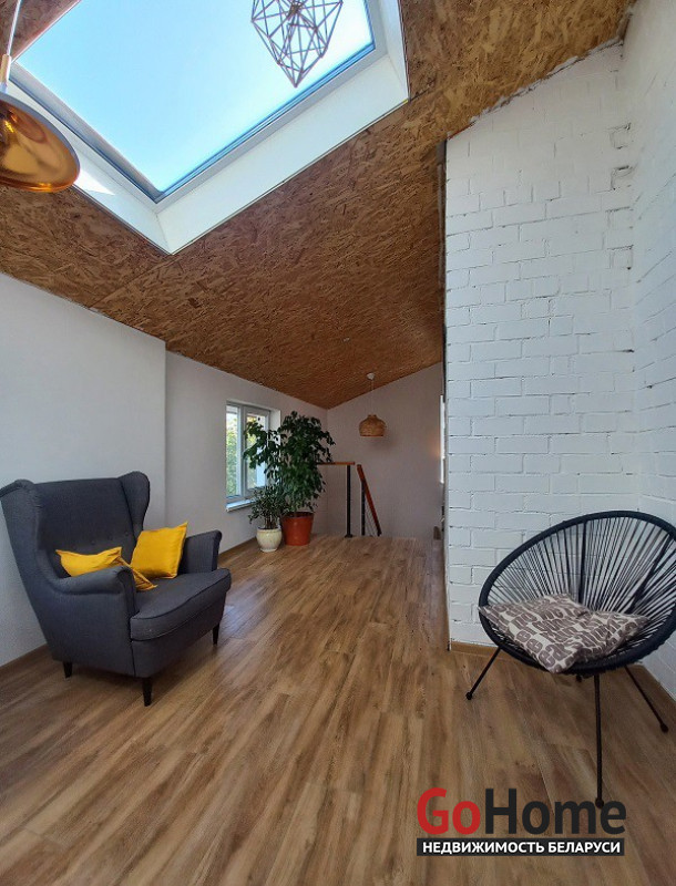 Коттедж в 3 уровнях, из красного кирпича, утеплен и оштукатурен. Крыша - ондулин и металлопрофиль, отопление на газу, есть 2 камина, центральный водопровод, местная канализация. Первый этаж под чистовую отделку, второй полностью готов к проживанию.