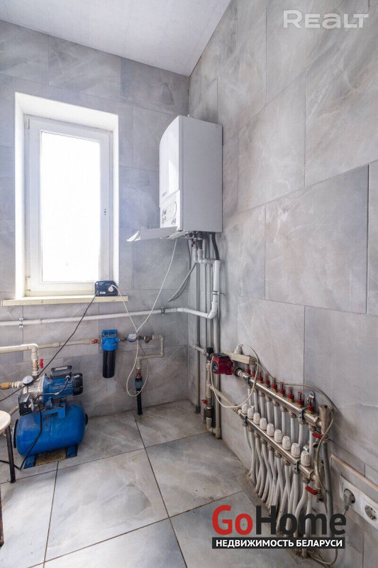 В доме - всё коммуникации центральные, для отопления - газовый котел. На первом этаже - все готово под чистовую отделку, а на втором - практически все сделано.