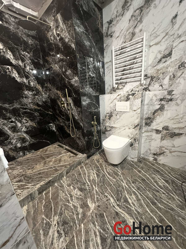 Сан. узел совмещенный, облицован плиткой, с большой душевой кабиной, теплый пол, сантехника REA производство РП. Установлен вода нагреватель на 50 л. Хорошая шумоизоляция, дом не оборудован газоснабжением.