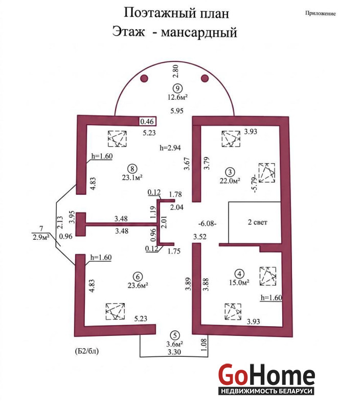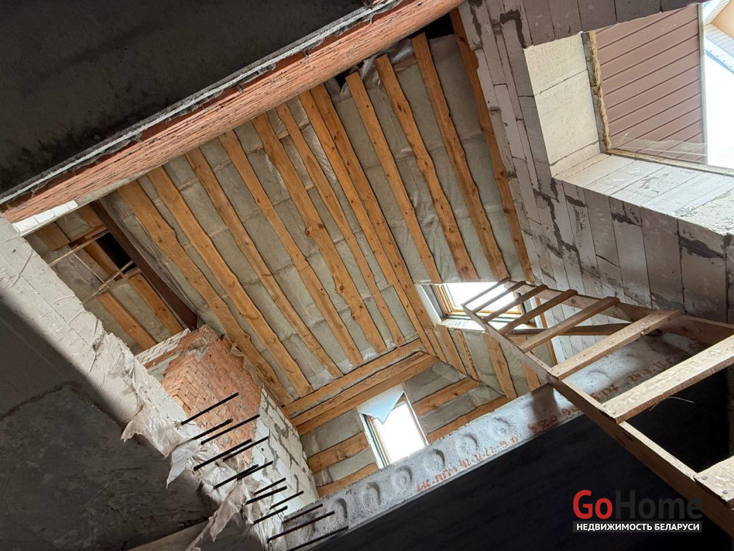Дом площадью 195,4/138,3м2, 5-комнатный одноэтажный мансардного типа, построен из газосиликатных блоков, крыша– битумная черепица.