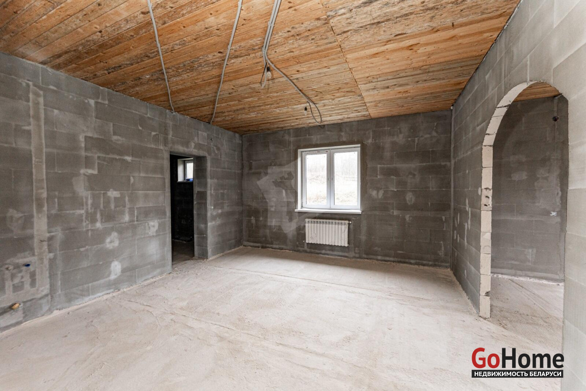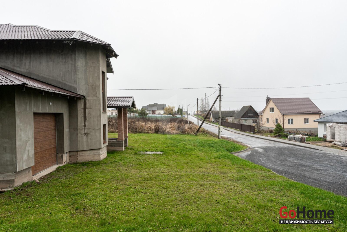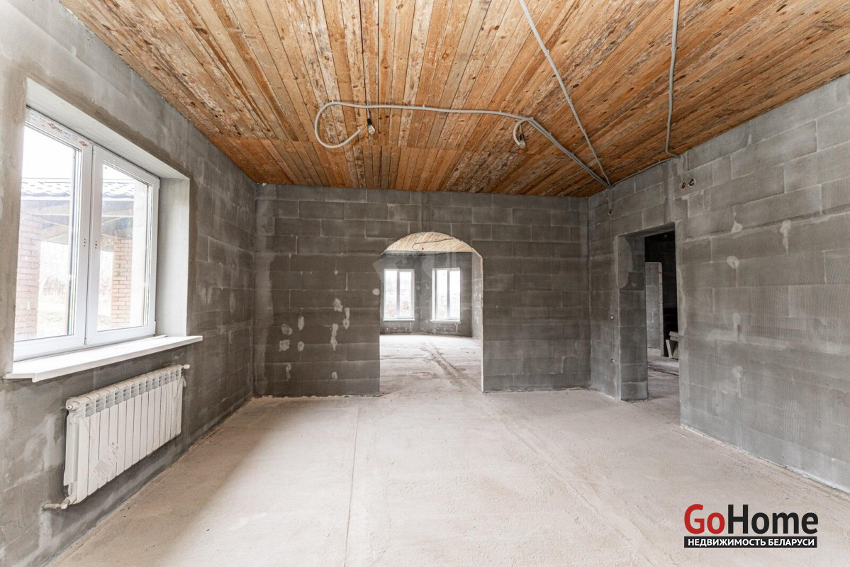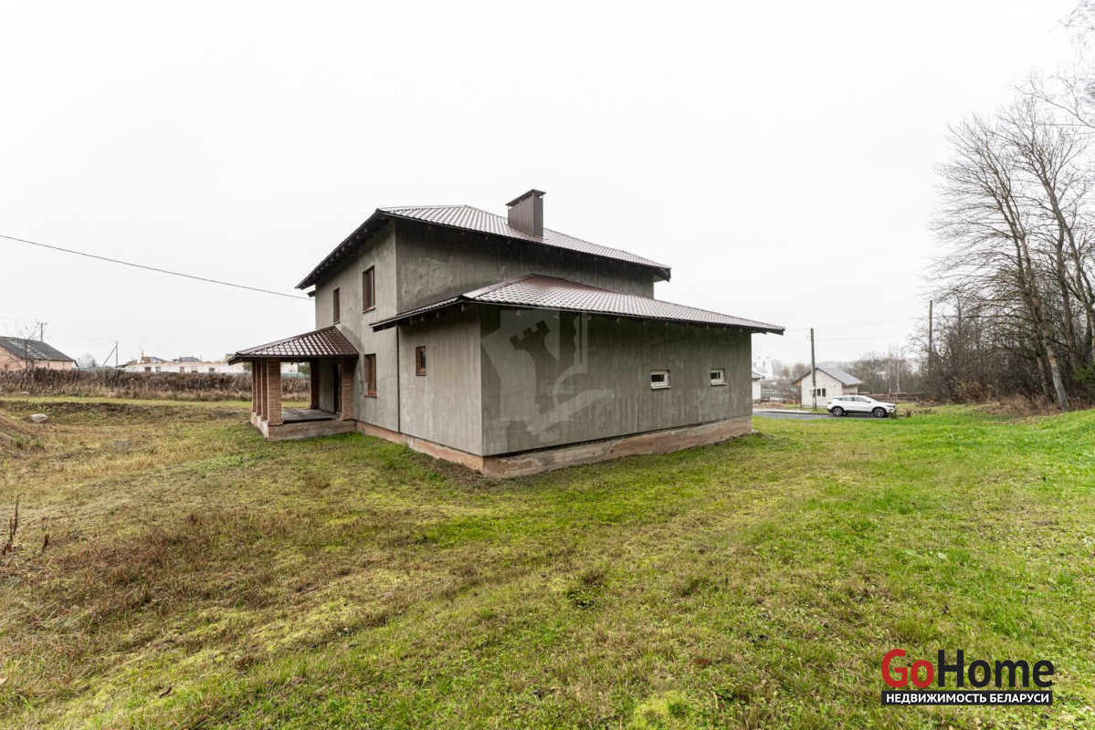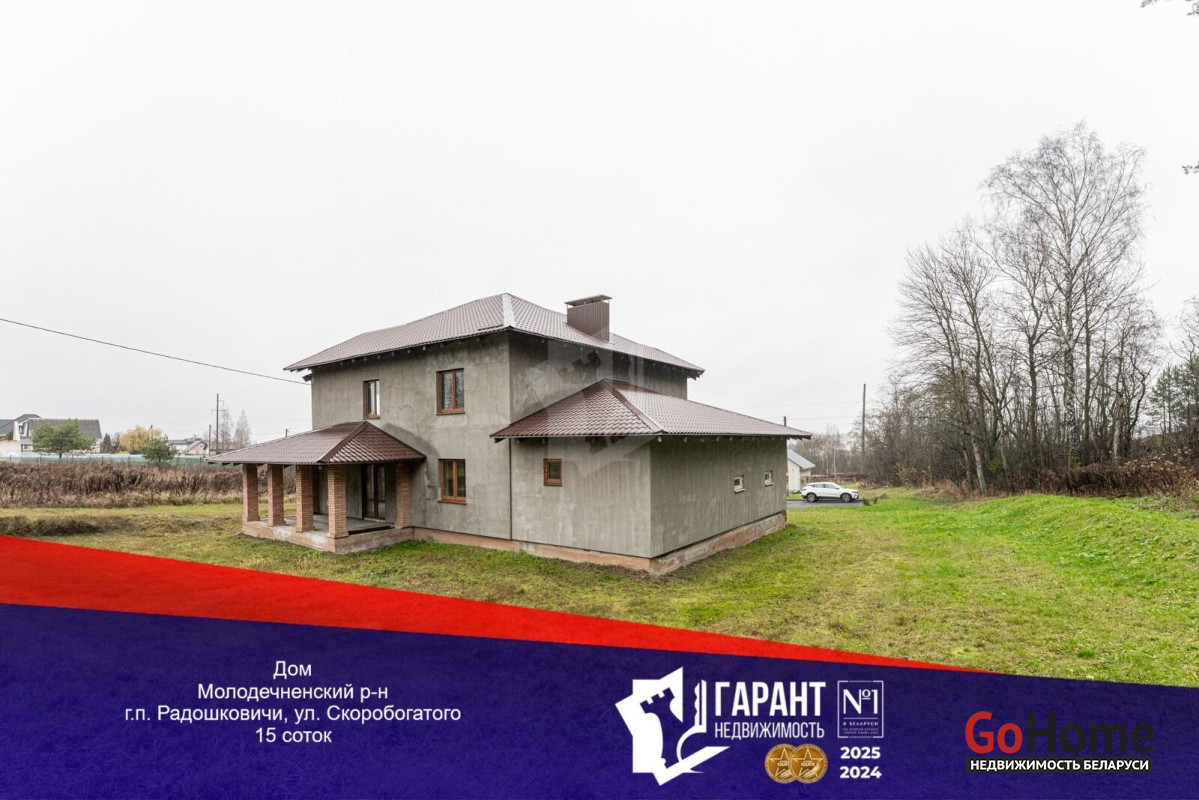 Коттедж с прекрасной планировкой для большой семьи.Шикарное расположение рядом с лесом.Улица расположена в новом районе посёлка Радошковичи.Общая площадь- 282 кв.м.Участок -15 соток.Год постройки- 2018Готовность примерно 75-80%Фасад утеплёнКанализация- трубы заложены, но колодца нет.Кровля- металлочерепицаЭлектричество 220/380 В, разведено по дому, кроме кухни.Отопление планировалось электрическое по льготному тарифу.Мощность на отопление 15 кВтМощность на электроснабжение 6 кВтСтены внутри- оштукатуреныНа первом этаже залита стяжка полаПерекрытие второго этажа- временноеВодоснабжение центральноеГаз примерно на расстоянии 20 метров.По проекту – кухня 25 кв.м. плавно переходит в просторную гостиную с выходом на террасу.В этой комнате очень много света за счёт большого количества окон.На первом этаже планировалась котельная, а также в будущем площадь позволяет разместить баню-сауну.Просторный холл придаёт дому дополнительную роскошь благодаря размерам.Изюминка второго этажа- панорамный вид из балкона на локацию.В доме на каждом этаже предусмотрены санузлы.Под общей кровлей-гараж. Общей площадью 29.4кв.м.Дорога по улице асфальтирована полностью до нашего объекта. Имеется большая стоянка.Дом требует завершения строительства.Недалеко от дома находится школа, в посёлке два детских сада,поликлиника, магазины, почта, аптеки и всё необходимое для проживания.Транспортное сообщение с Минском есть.