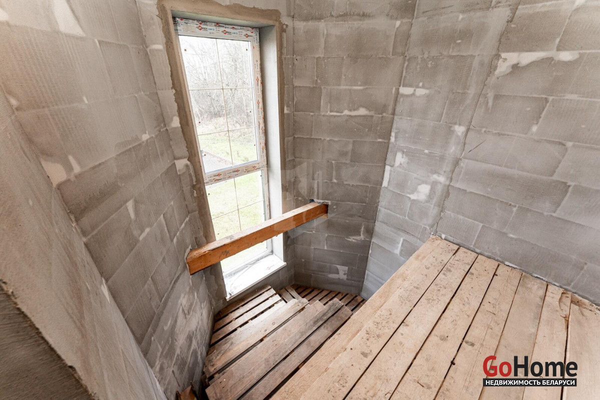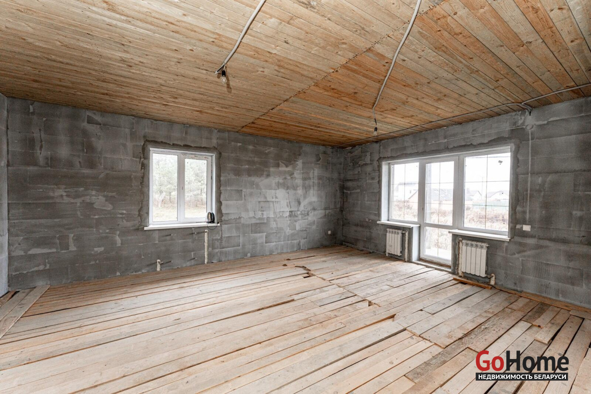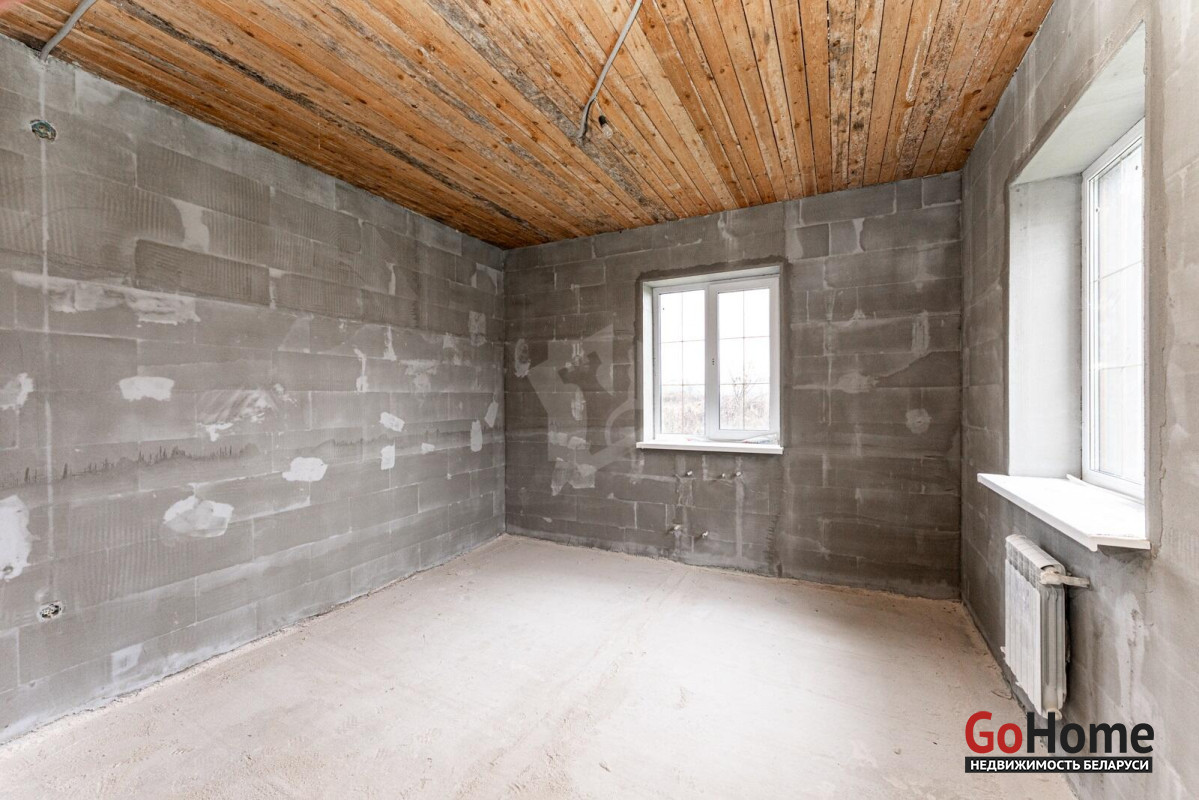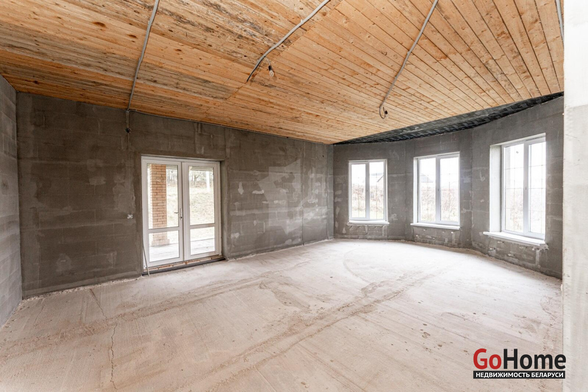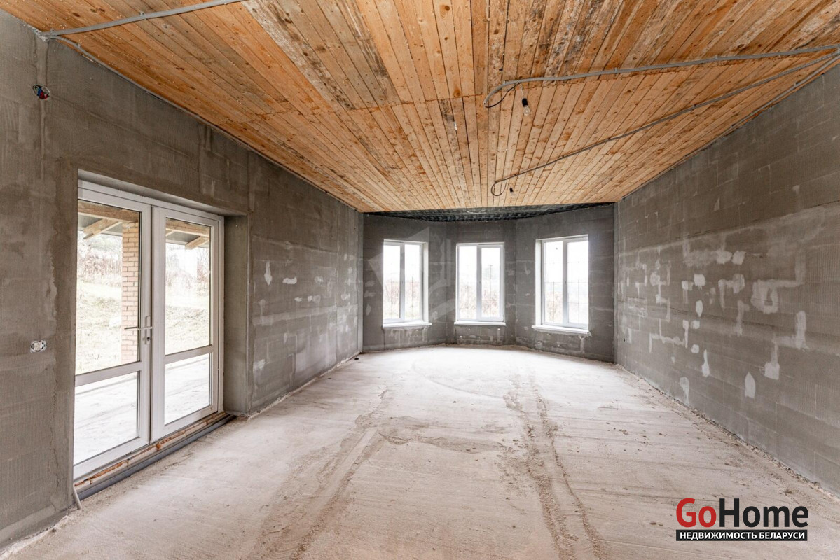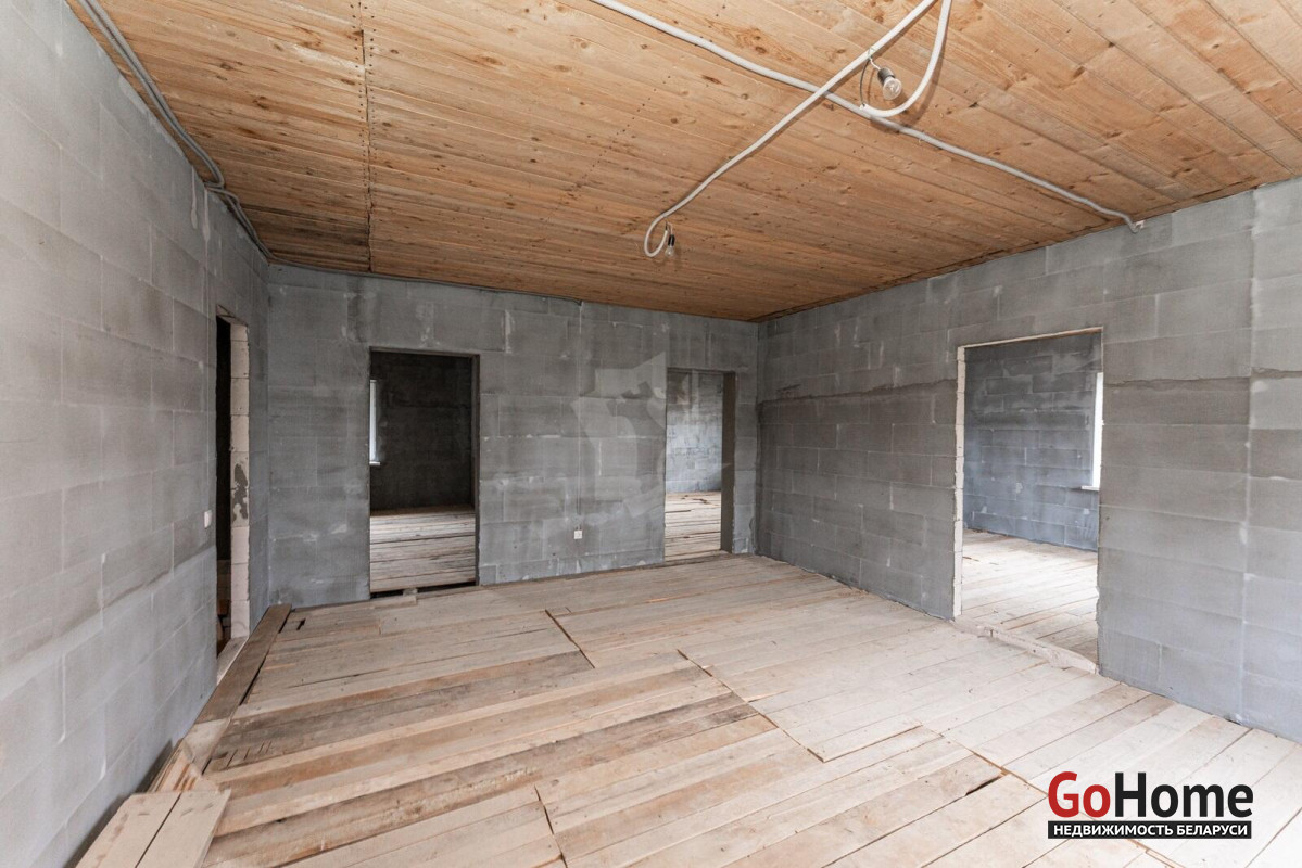 Коттедж с прекрасной планировкой для большой семьи.Шикарное расположение рядом с лесом.Улица расположена в новом районе посёлка Радошковичи.Общая площадь- 282 кв.м.Участок -15 соток.Год постройки- 2018Готовность примерно 75-80%Фасад утеплёнКанализация- трубы заложены, но колодца нет.Кровля- металлочерепицаЭлектричество 220/380 В, разведено по дому, кроме кухни.Отопление планировалось электрическое по льготному тарифу.Мощность на отопление 15 кВтМощность на электроснабжение 6 кВтСтены внутри- оштукатуреныНа первом этаже залита стяжка полаПерекрытие второго этажа- временноеВодоснабжение центральноеГаз примерно на расстоянии 20 метров.По проекту – кухня 25 кв.м. плавно переходит в просторную гостиную с выходом на террасу.В этой комнате очень много света за счёт большого количества окон.На первом этаже планировалась котельная, а также в будущем площадь позволяет разместить баню-сауну.Просторный холл придаёт дому дополнительную роскошь благодаря размерам.Изюминка второго этажа- панорамный вид из балкона на локацию.В доме на каждом этаже предусмотрены санузлы.Под общей кровлей-гараж. Общей площадью 29.4кв.м.Дорога по улице асфальтирована полностью до нашего объекта. Имеется большая стоянка.Дом требует завершения строительства.Недалеко от дома находится школа, в посёлке два детских сада,поликлиника, магазины, почта, аптеки и всё необходимое для проживания.Транспортное сообщение с Минском есть.
