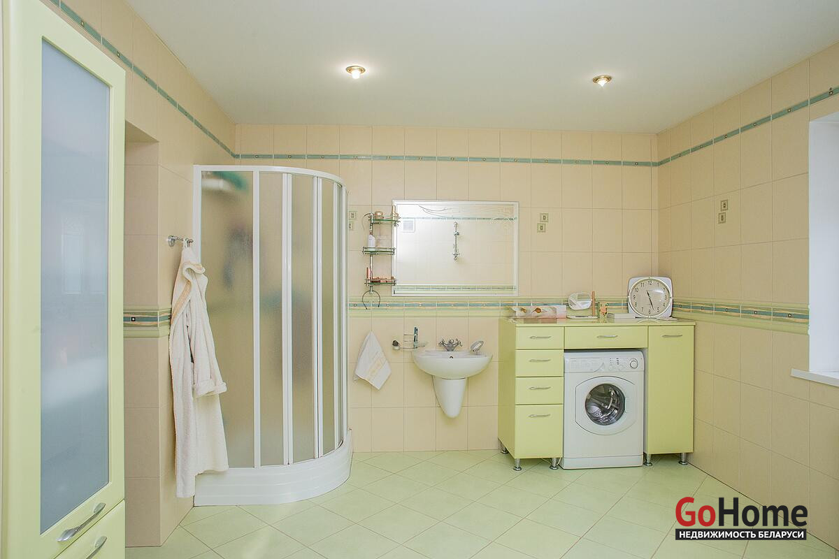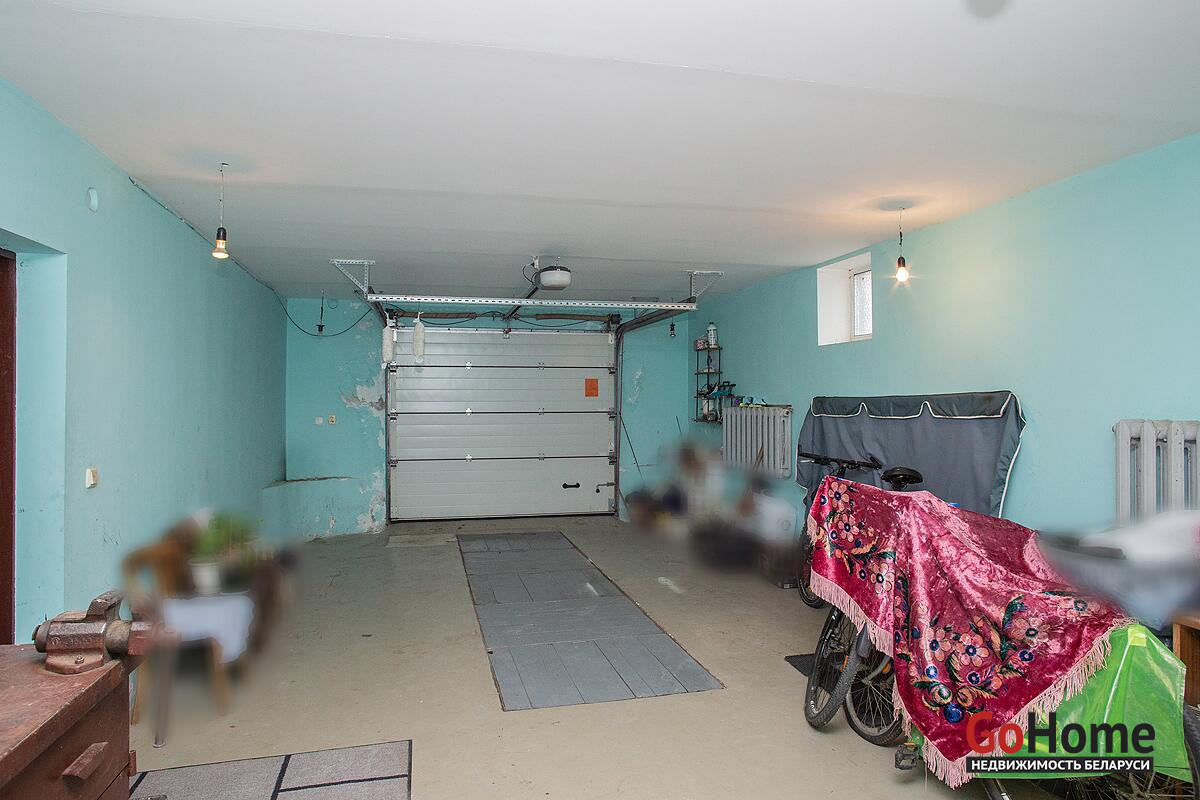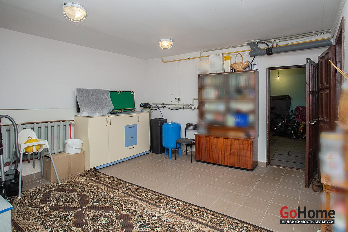 На первом этаже гараж с ямой и подвалом, хозпомещение (установлен газовый котел, стиральная и посудомоечная машины). Есть вход с улицы.