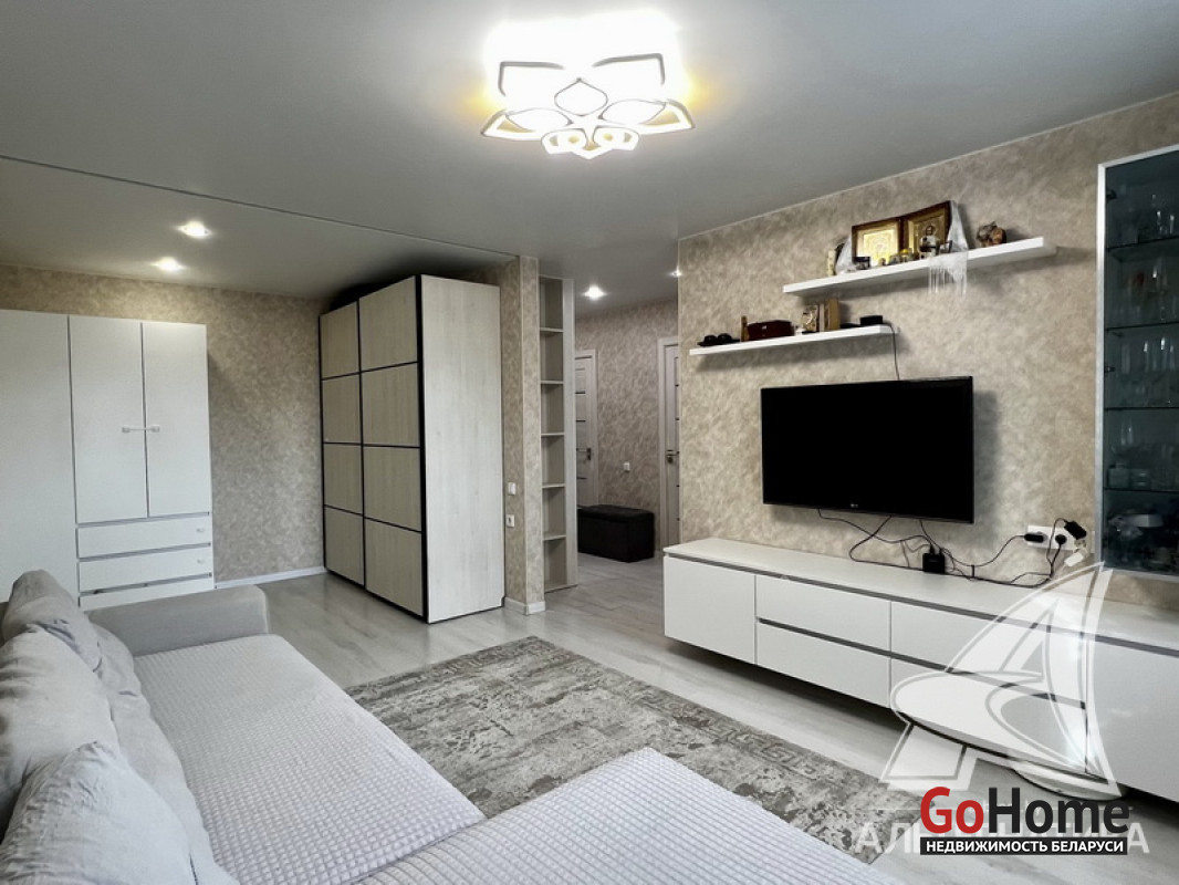 1-комнатная квартира, г. Брест, ул. Морозова, 2019 г.п., 4 / 15 кирпич, 43,4 / 40,2 / 19,4 / 9,9, санузел раздельный, балкон застеклен, стеклопакеты, межкомнатные двери - МДФ, входная дверь металлическая, натяжные потолки, полы - плитка и ламинат, стены оклеены обоями, в санузле современная плитка, ванна, установлена система очистки воды, домофон. В квартире остается вся встроенная мебель, холодильник, все шкафы. Остальное по договоренности. Квартира с хорошим ремонтом. Один пассажирский лифт. Один грузопассажирский лифт. Во дворе парковка для автомобилей. Установлен шлагбаум. Рядом магазины, гипермаркет Евроопт, остановки общественного транспорта, детский сад, магазин Ома. Лот - 260566