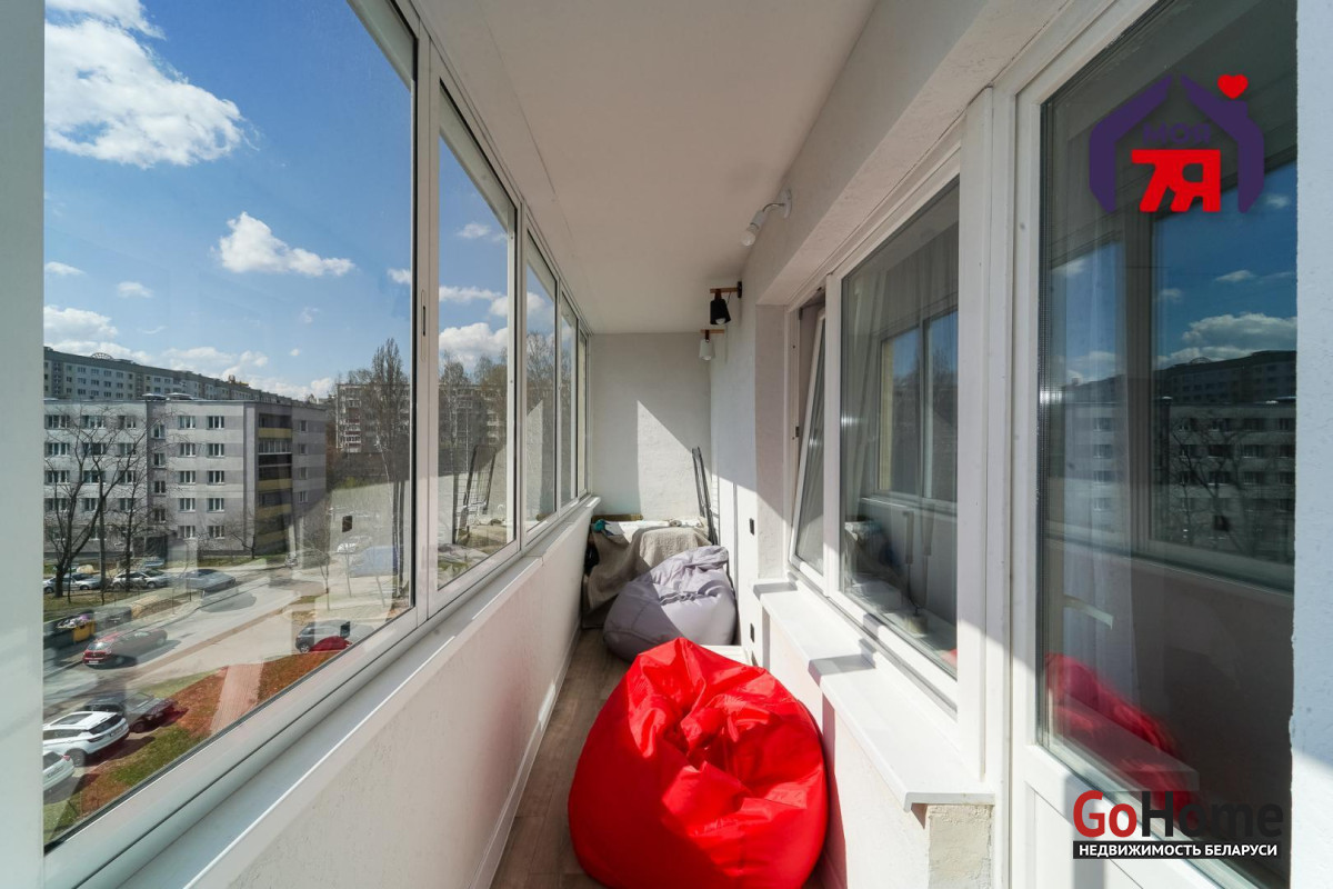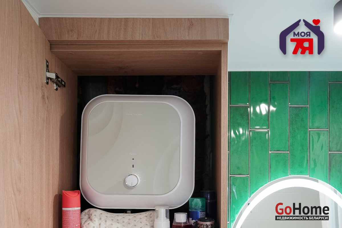 Балкон застеклён, выход из комнаты - можно использовать как зону отдыха или дополнительное хранение.Санузел совмещён, установлен бойлер.