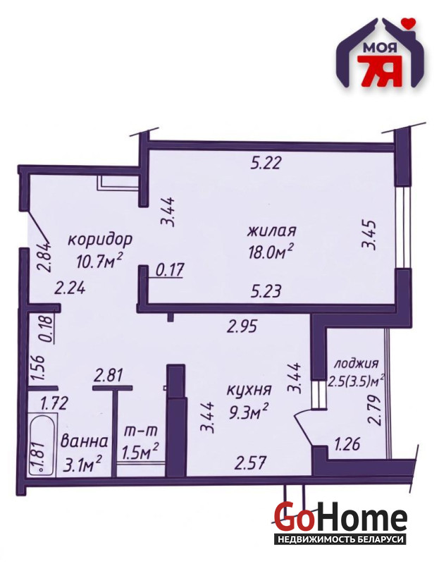 -Просторная 1‑комнатная планировка позволяет гибко использовать пространство.
