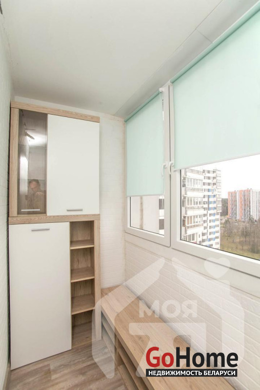 -Застекленная лоджия становится дополнительной комнатой. Здесь можно отдыхать, работать, хранить вещи. На лоджии установлен шкаф для хранения — дополнительное место для вещей. Лоджия защищена от непогоды благодаря остеклению, позволяя использовать её круглый год.