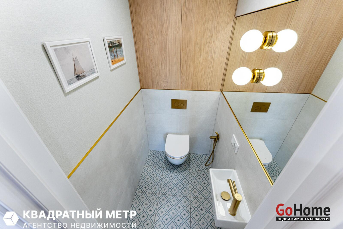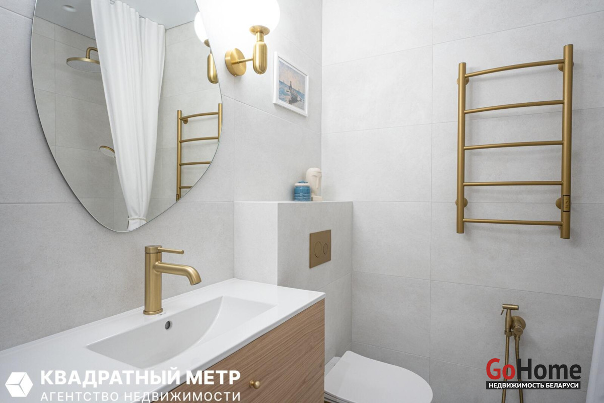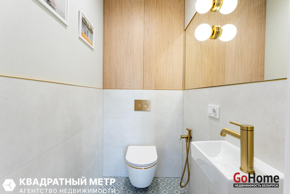 Раздельный санузел с ванной и бойлером, гигиеническим душем, а также встроенной мебелью и стильной сантехникой, добавят комфорта проживанию.