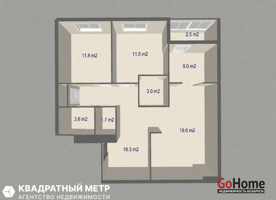 Общая площадь – 81,5 м2 (плюс отдельная кладовая 2,6м2), жилая площадь 54,9 м2, лоджия - 2,5 м2, мастер-спальня- 11,5 м2 с гардеробной 3,0м2, вторая изолированная комната назначением спальня/кабинет/детская -11,8 м2, третья изолированная комната 9,0 м2.