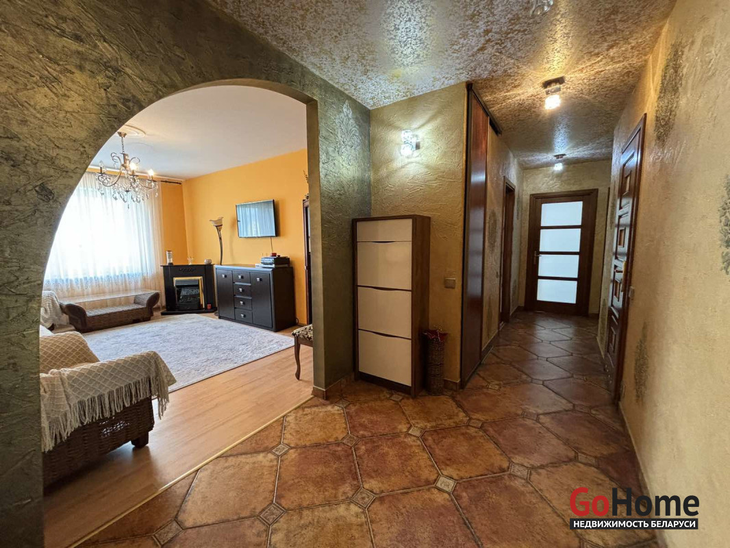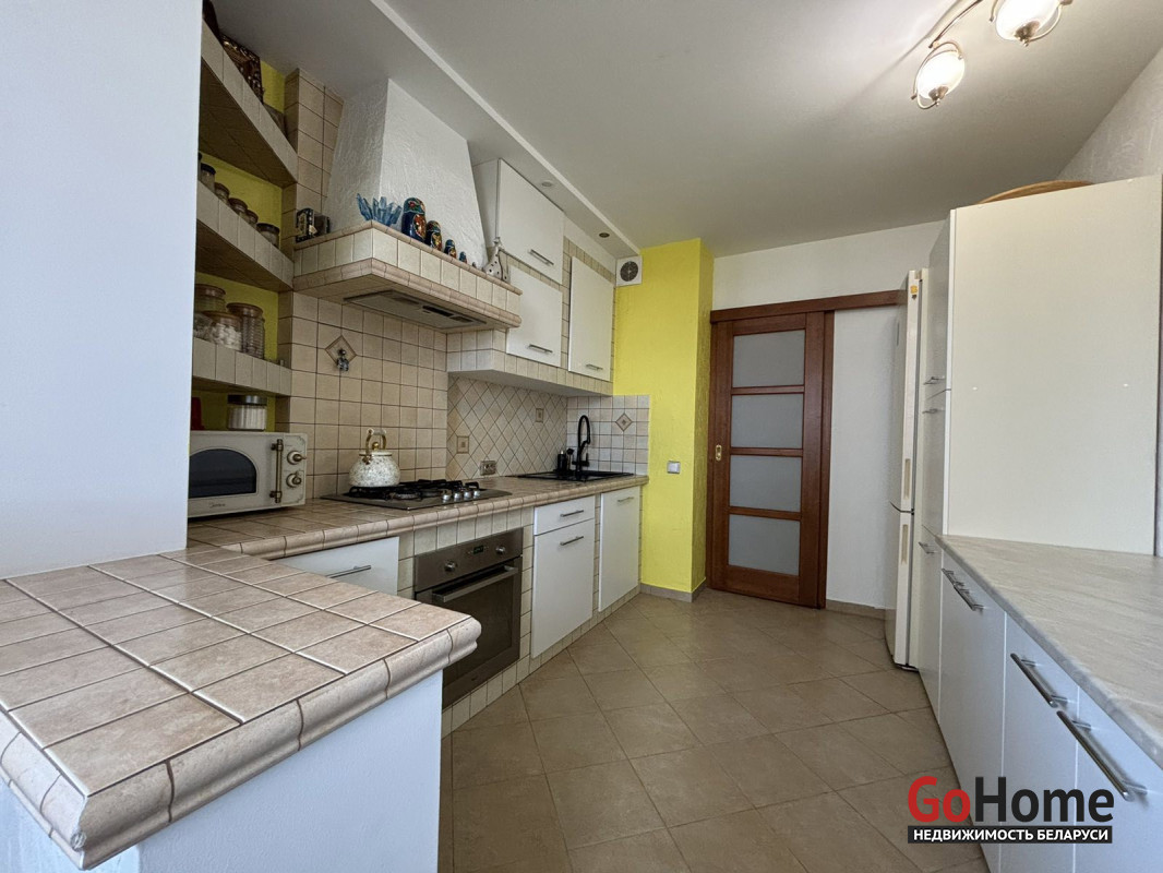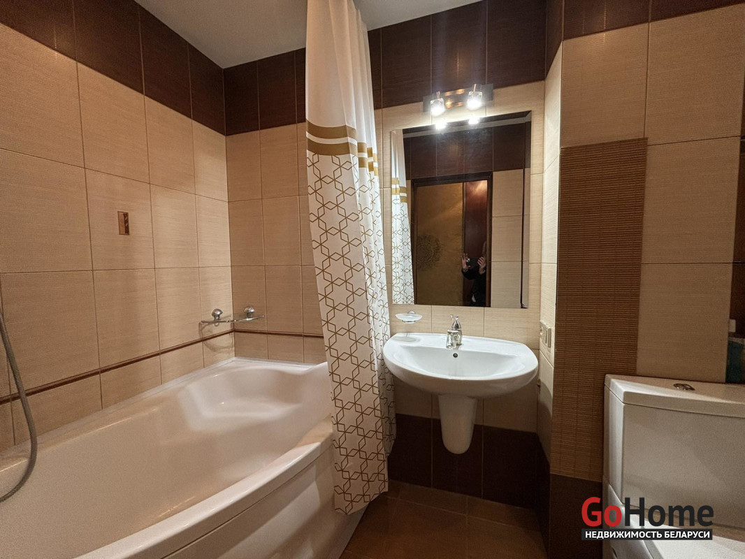 Развитая инфраструктура дома (ТЦ Тринити , магазины, евроопт, школы, гимназии, детские сады, заправки, кафе и др. ) , хорошая транспортная развязка .