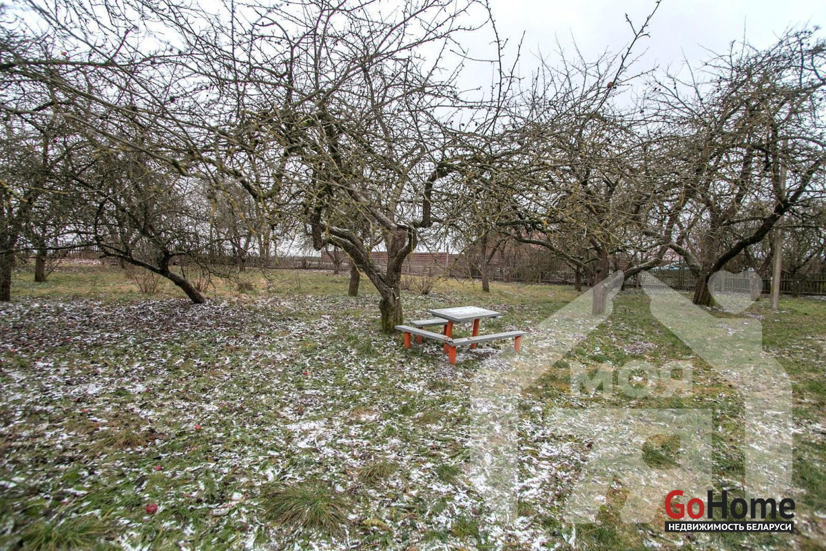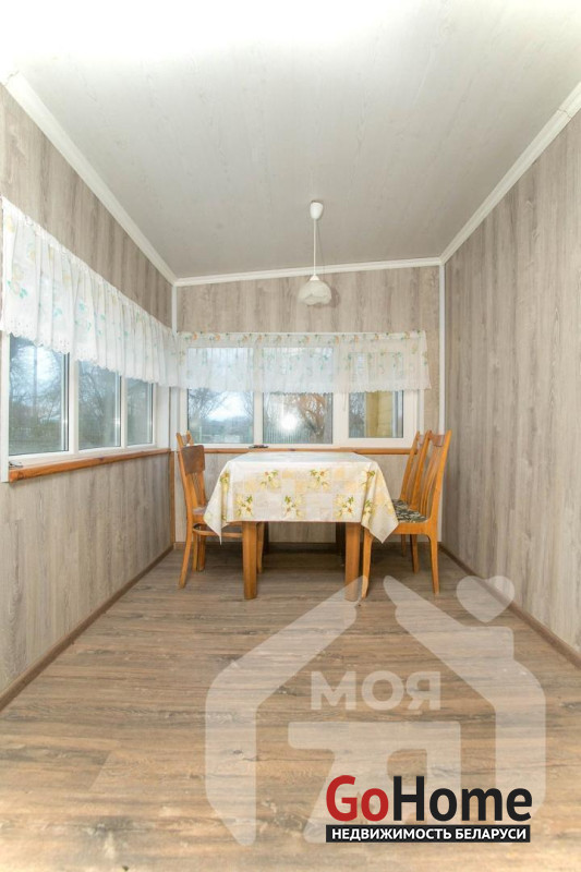 - Дом общей площадью 57,6 кв.м с жилой площадью 26,5 кв.м и кухней 12,8 кв.м. Планировка одноуровневая, дом бревенчатый. В составе дома есть утепленная веранда, которая используется как кухня-столовая, что позволяет рационально задействовать пространство и разделить жилую и хозяйственную зоны.- Отопление печное, что обеспечивает автономность. Водоснабжение организовано из колодца. Кровля выполнена из черепицы, что практично в эксплуатации и не требует частого обслуживания.- Участок площадью 30,2 сотки огорожен по периметру. На территории расположен крепкий блочный гараж, подходящий как для личных нужд, так и для хозяйственной деятельности. Также имеется глубокий забетонированный подвал, баня и летний душ. На участке высажен яблоневый сад и другие насаждения, что позволяет использовать землю не только под застройку, но и для ведения личного подсобного хозяйства.- Дом находится в агрогородке Лебедево, в 73 км от МКАД по Молодечненскому направлению. До Молодечно расстояние составляет 7 км, имеется хорошее транспортное сообщение, что удобно для регулярных поездок.- В пешей доступности, примерно в 10 минутах ходьбы, расположены магазин, школа, детский сад, аптека, амбулатория, дом культуры, школа искусств и отделение почты. Такое расположение упрощает решение повседневных бытовых и социальных вопросов.