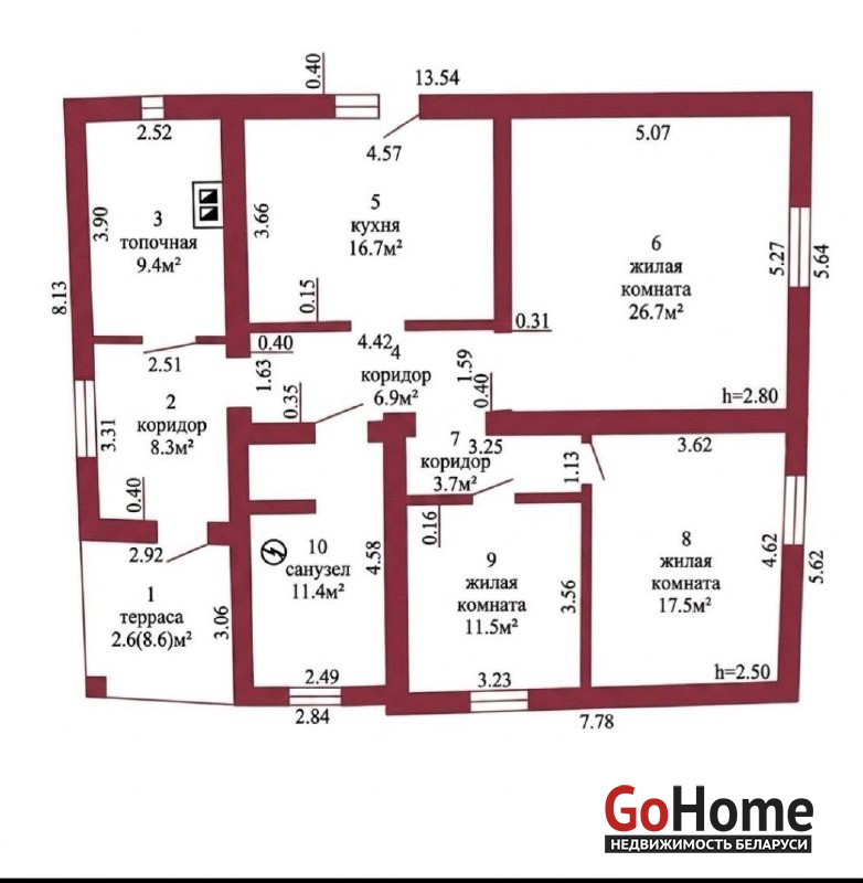 Общая площадь дома 112,1 м2, жилая (3 комнаты) - 55,7 м2, кухня 16,7м2.