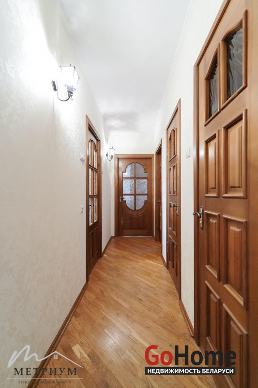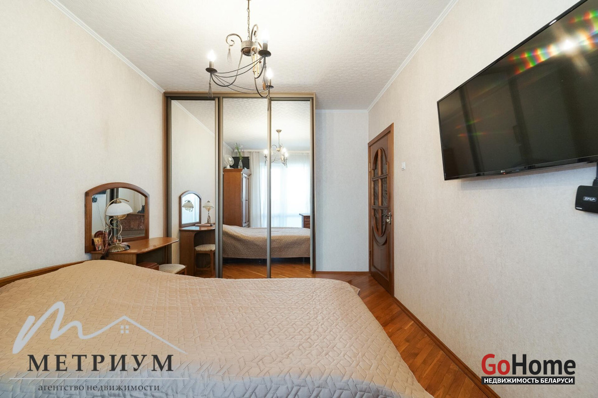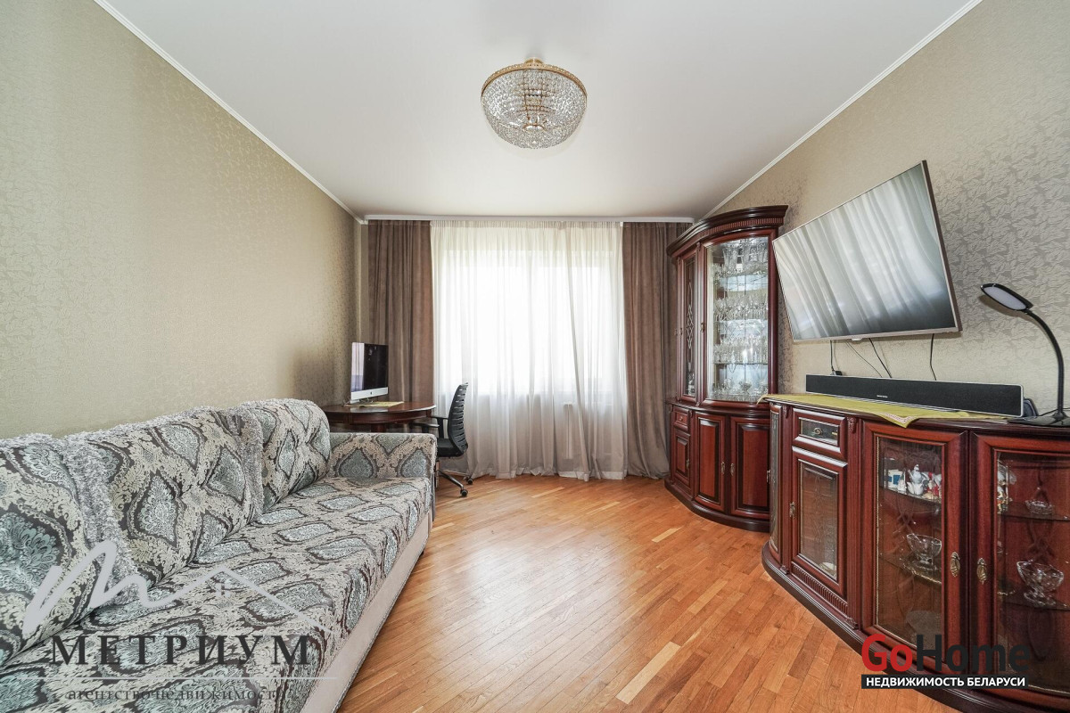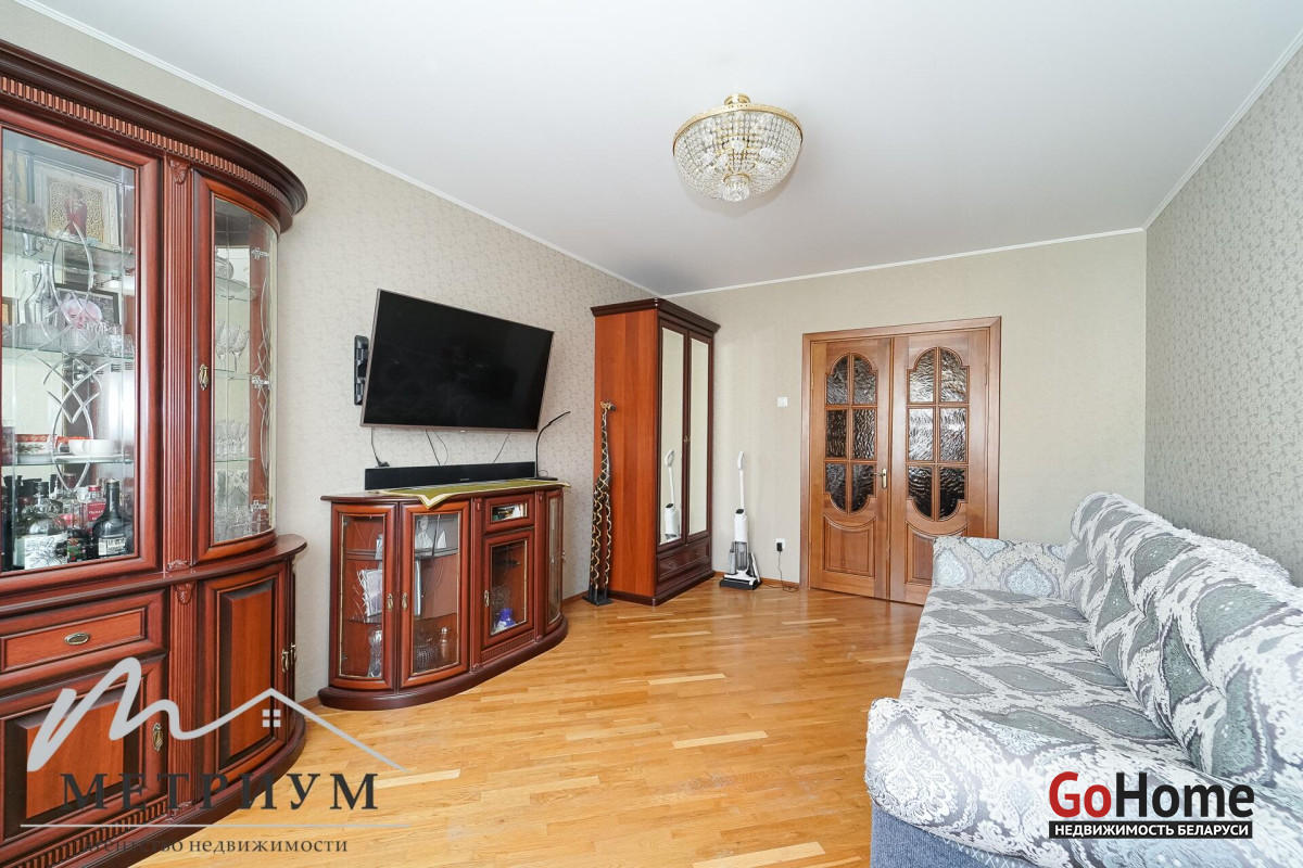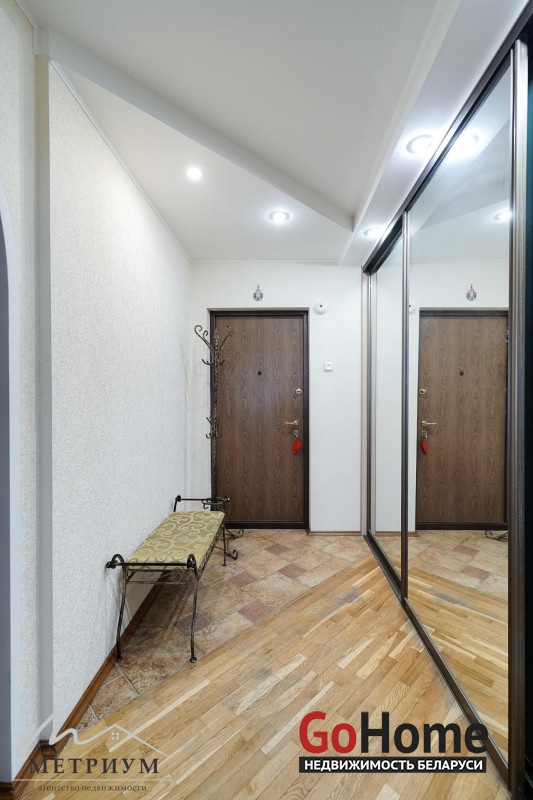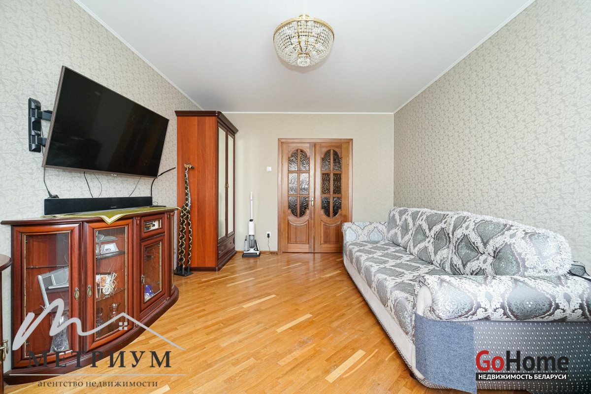 В прихожей и комнатах 3 шкафа-купе. На полу в комнатах паркет, в санузле и кухне плитка. Натяжные потолки в комнатах.