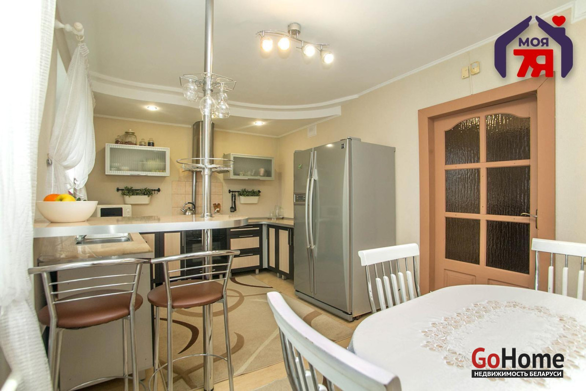 ️Просторный 3‑уровневый блочный, обложенный кирпичом, дом 124,9 м2 с четырьмя комнатами, просторной кухней 16,7 м2, отличным ремонтом на участке 9 соток — газовый котел, центральное водоснабжение, центральная канализация, гараж, подвал, мебель частично остаётся.