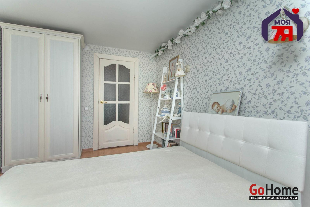 -Спальни оформлены в классическом стиле, создающем атмосферу комфорта и расслабления. Деревянные кровати с коваными изголовьями, деревянные комоды, стильная мебель говорят о качестве и вкусе. Обои с мягким рисунком не раздражают глаз, создают уютную, приватную атмосферу. Полы — ламинат натурального цвета.