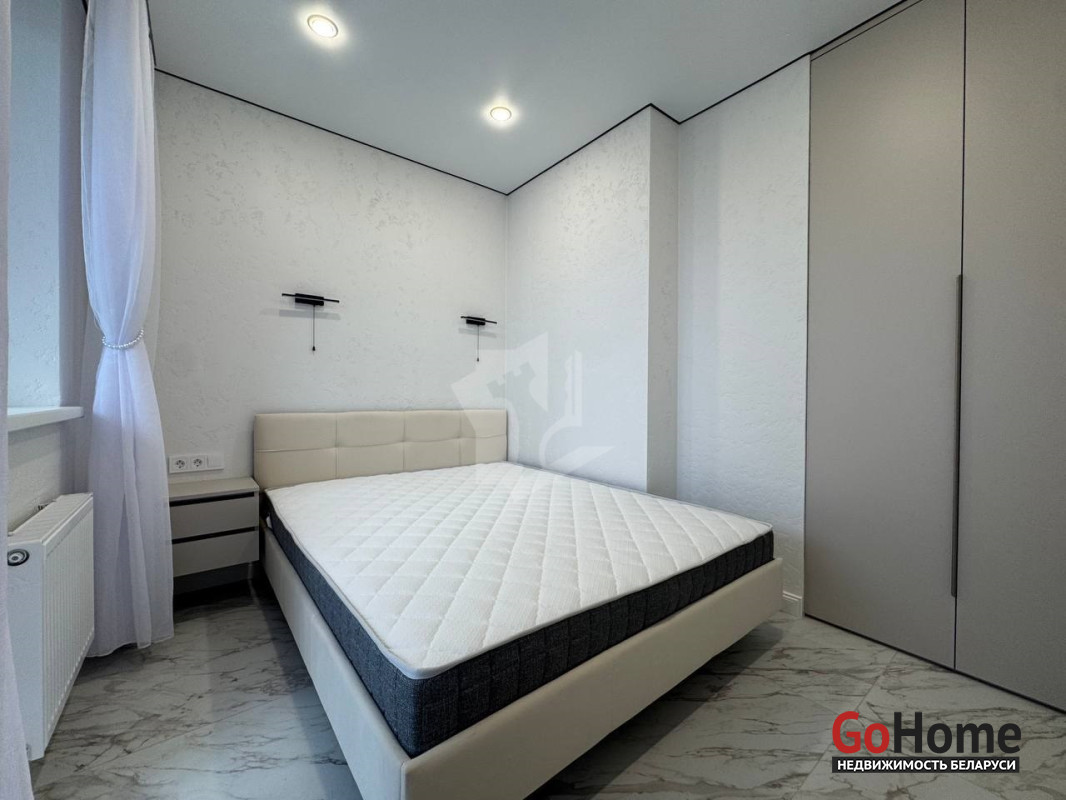 Внутри: Просторная квартира с большой кухней-гостиной и спальней. В спальне установлен встроенный шкаф — идеальное место для хранения вещей. Большая двуспальная кровать, 2 прикроватные тумбочки,лоджия.