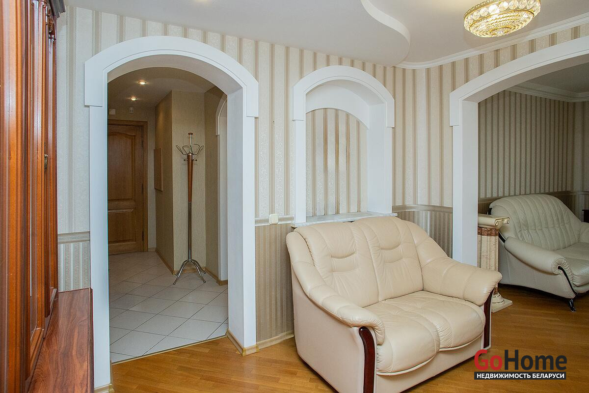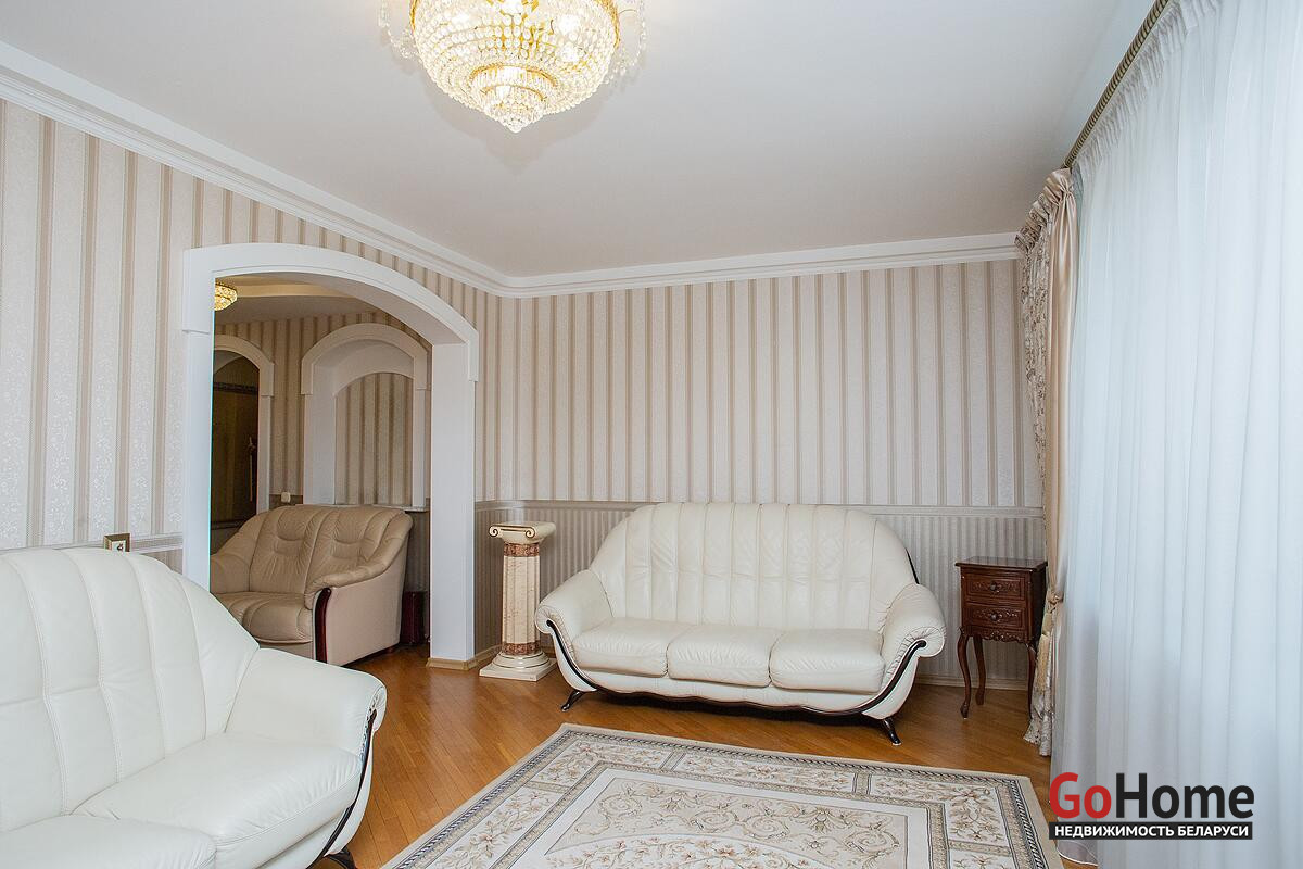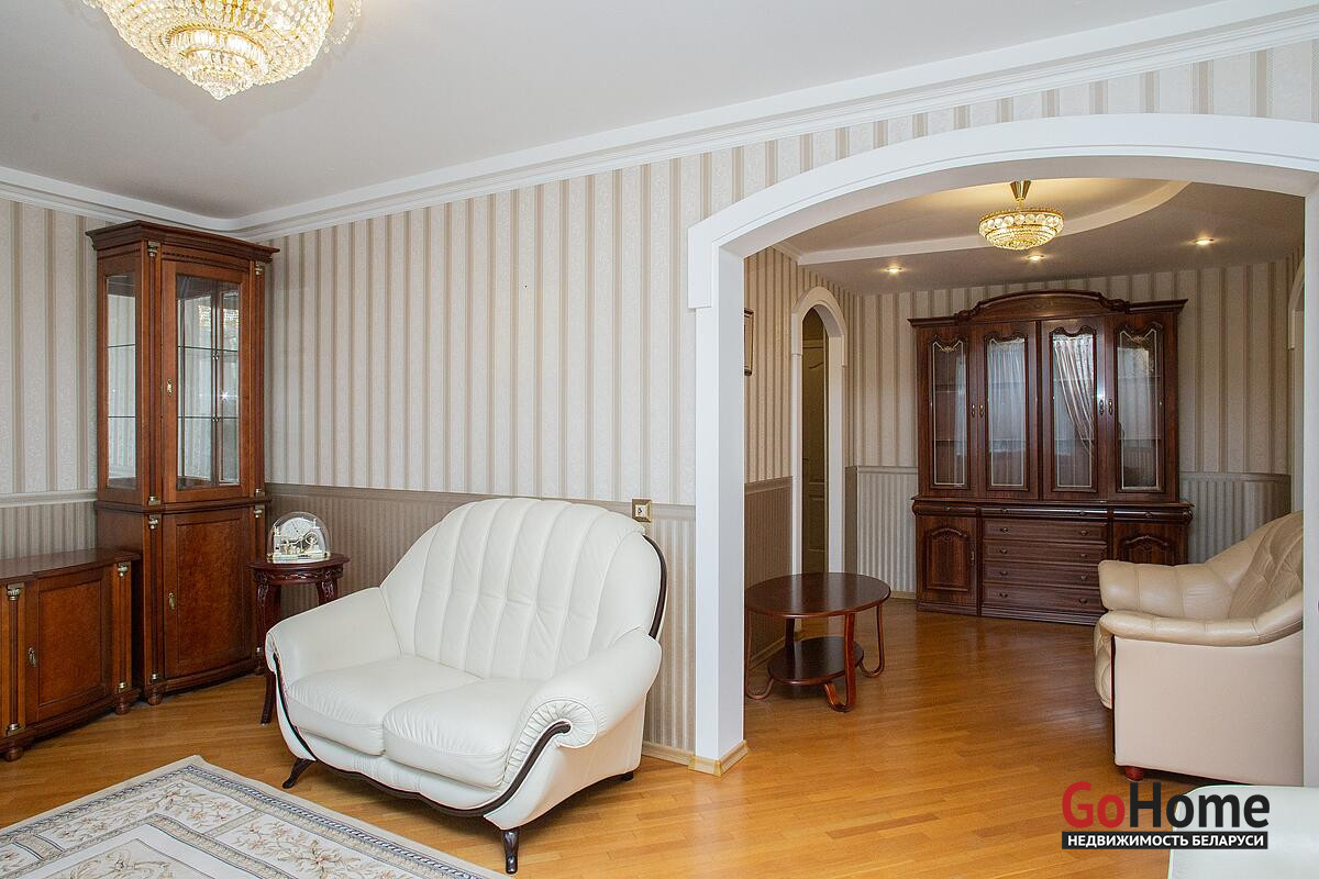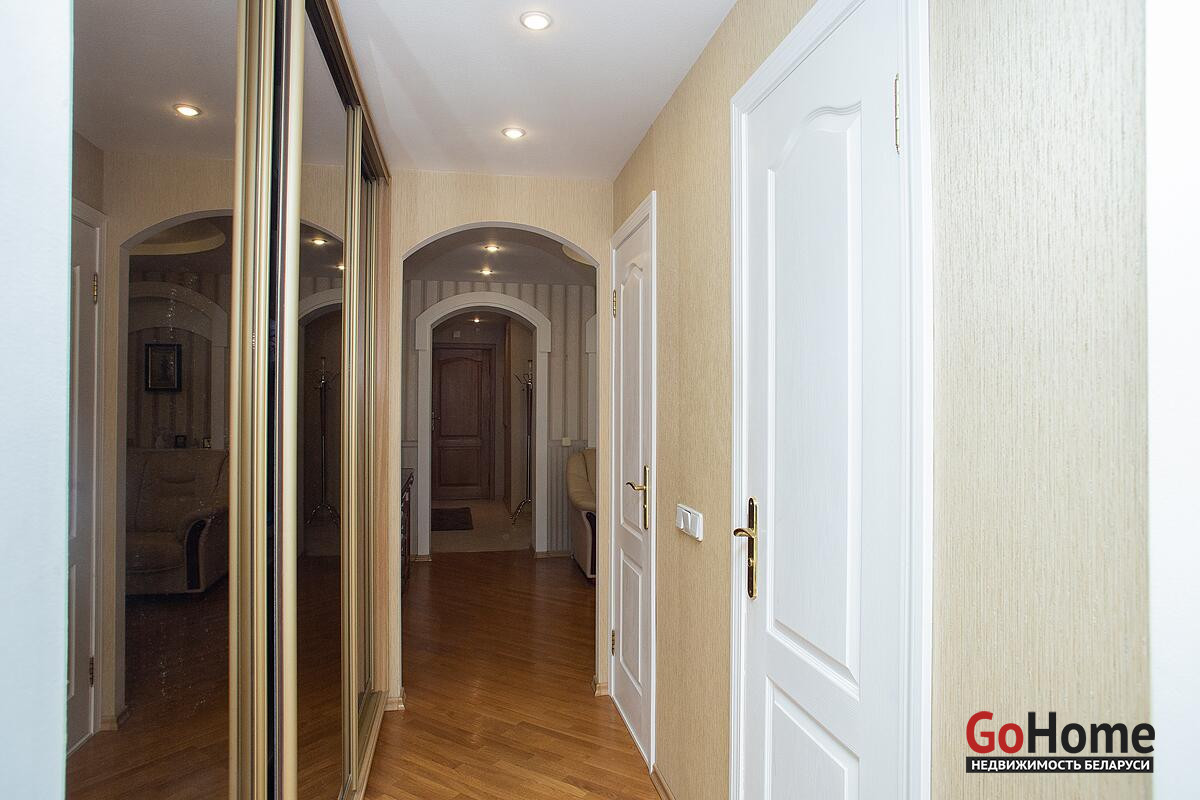 Встроенная кухонная, корпусная и мягкая мебель.. В санузлах - плитка, ванная, умывальник, смесители, двери. В оконных проемах стеклопакеты. В коридоре установлен вместительный шкаф-купе и гардеробная.Сигнализеция. Входная металлическая дверь.
