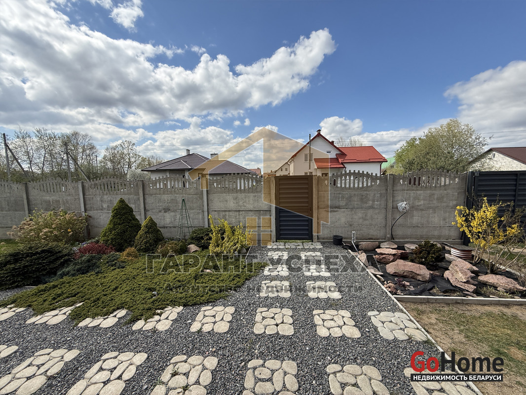 Просторная входная группа с ландшафтным оформлением. Остальная территория в стадии благоустройства. На участке молодые плодовые деревья территории достаточно места для сада, огорода и зоны отдыха.