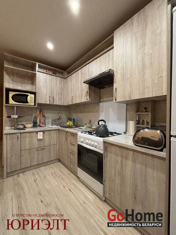 После продажи остаётся новый встроенный кухонный гарнитур и встроенные шкафы в коридоре.