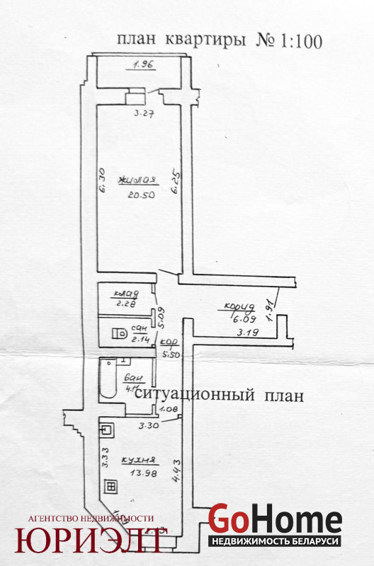 Общая площадь 54.6 м.кв. без учета лоджии, жилая 20.5 м.кв., кухня 13.9 м.кв.