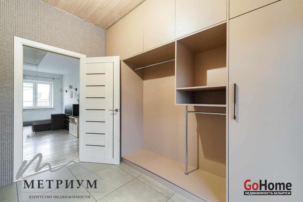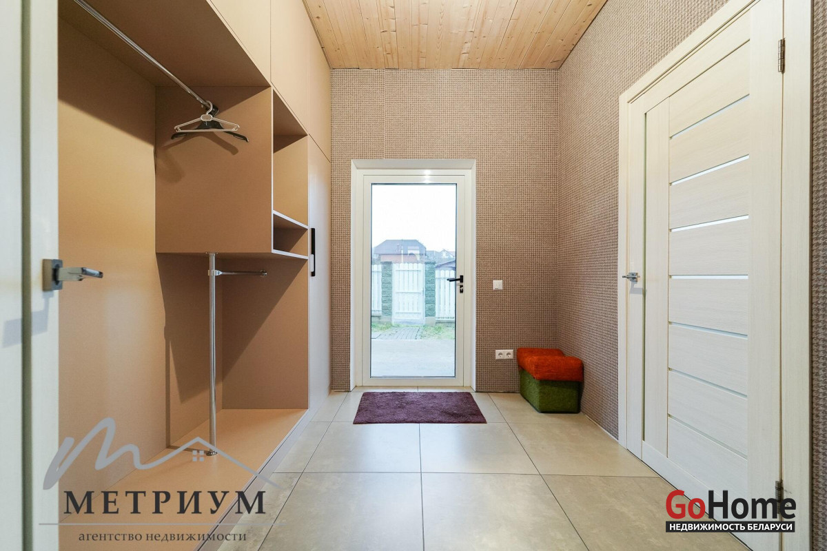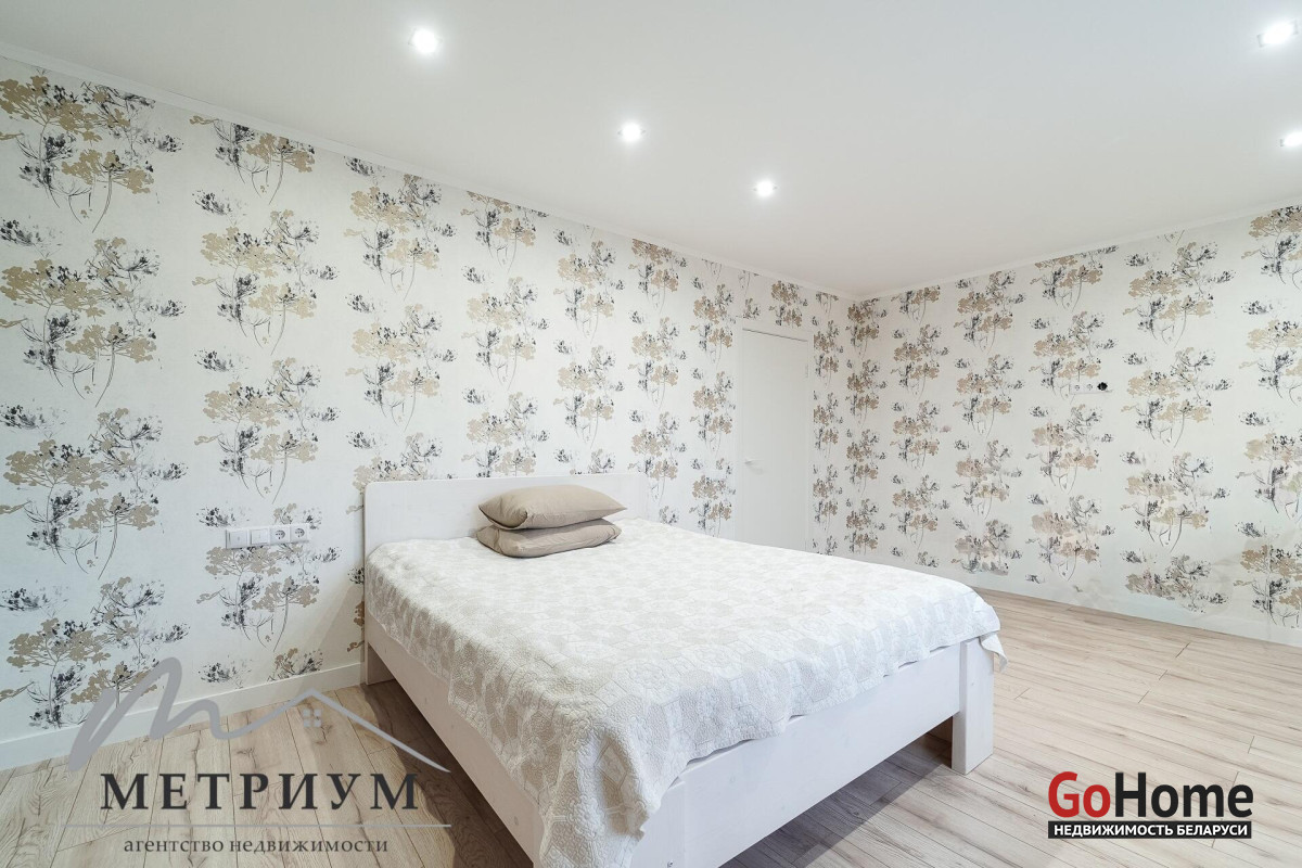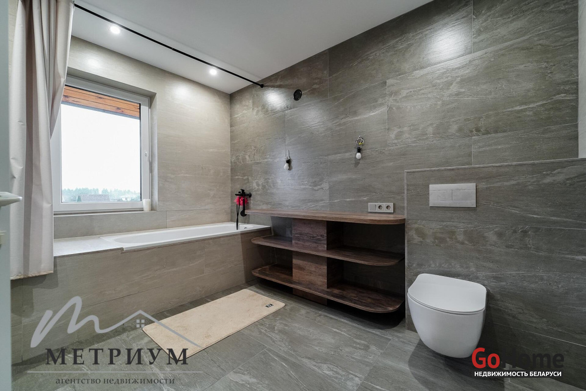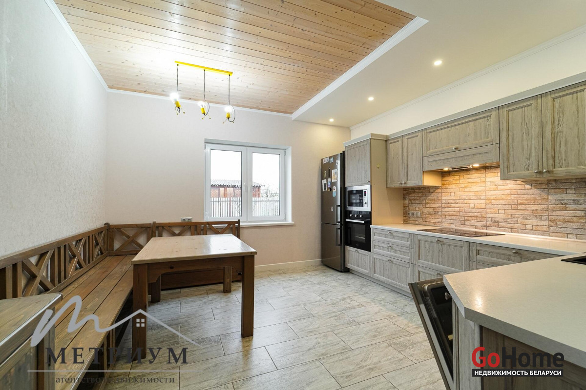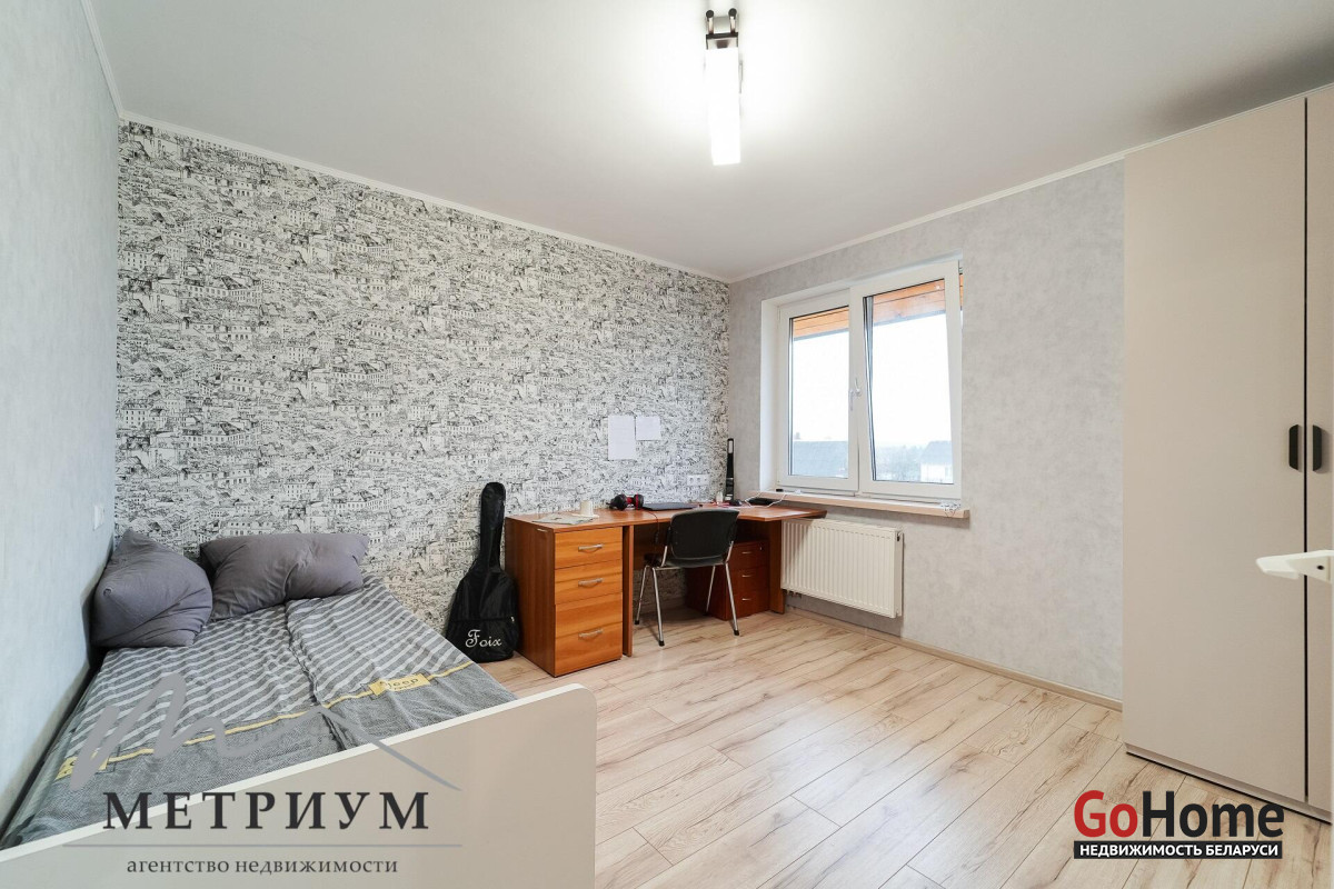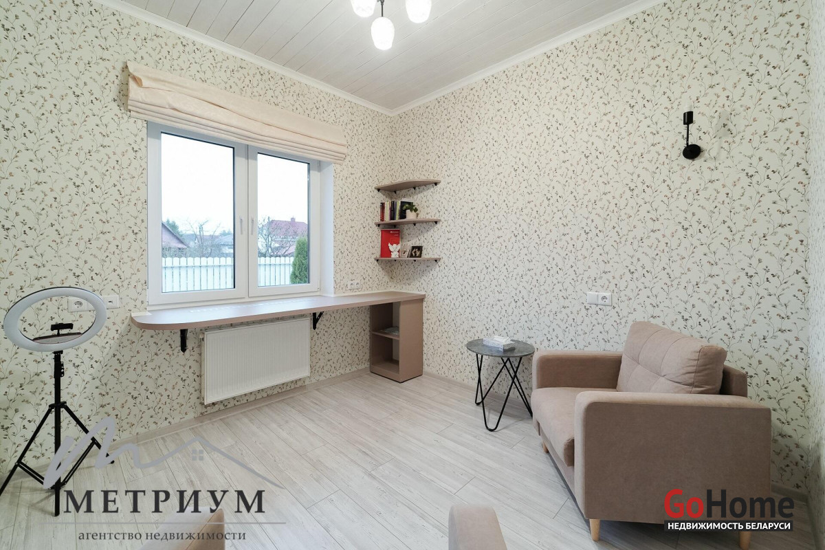 СТ «Ясная поляна. Современный дом, рядом с деревней Юхновка (Московском напр., 18 км от МКАД).Площадь дома по СНБ 230,6 кв.м., Общая площадь 147 кв.м., жилая площадь 96.3 кв.м.При строительстве и отделке были использованы натуральные материалы. Электричество 380 В.Просторная гостиная с выходом на террасу. Светлые жилые комнаты с панорамными окнами "в пол".Просторный гараж примыкает к дому. Потолки высота 2.85 м.Фундамент - утепленная плита. Материал стен - газосиликатный блок, утеплитель - мин.вата фасадная. Кровля – гибкая черепица "Katepal". Газ центральный, вода (центральная от круглогодичной скважины СТ). Канализация местная.Отопление на первом этаже: радиаторы + теплый пол, на втором радиаторы.В проекте дома предусмотрена возможность установки дровяного камина.Участок 10 соток в частной собственности, на котором расположена баня. Отличное транспортное сообщение. - Хорошая дорога до дома по трассе Минск-Москва, 15 минут до микрорайона Уручье.Пригородные автобусы доМинска - 20 минут, регулярное сообщение.- До ж/д станции "Городище" 3км.