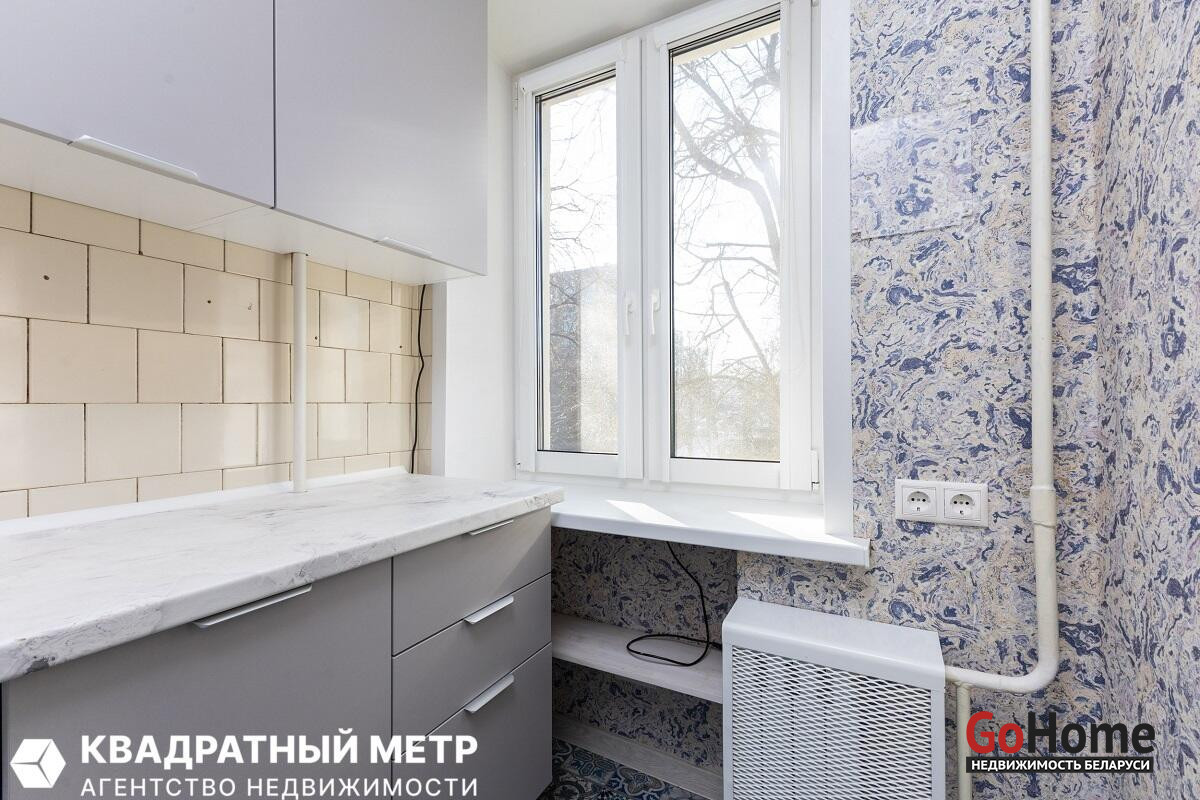 Квартира с балконом расположена на третьем этаже четырехэтажного кирпичного дома 1959 года постройки (капитальный ремонт закончился в феврале 2025 года), окна которой выходят на зеленый бульвар.