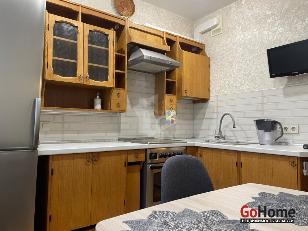 Рядом расположены школы, детский сад, поликлиника, гипермаркет Гиппо и крупный лесопарк Уручье. Квартира полностью укомплектована всей необходимой мебелью и европейской техникой для комфортного проживания.