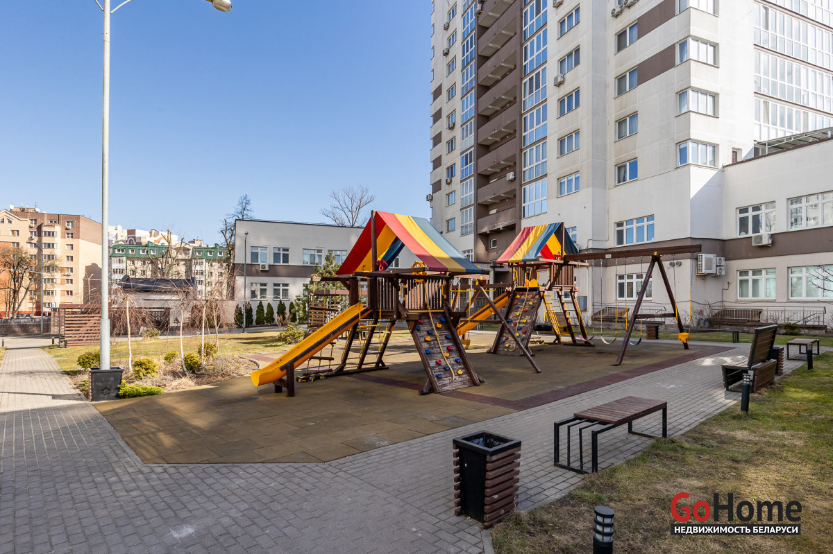 Локация: сердце города. Рядом – стела «Минск – город-герой», парк Победы, набережная Свислочи, проспект Победителей, ТРЦ «Galleria Minsk».