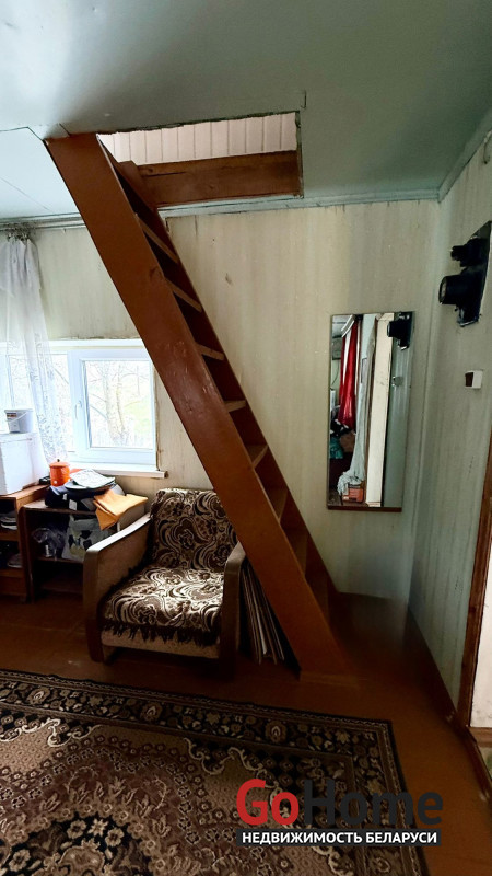 На 1-этаже располагается веранда, кухня, 1 комната, на 2-этаже комната с кладовкой.