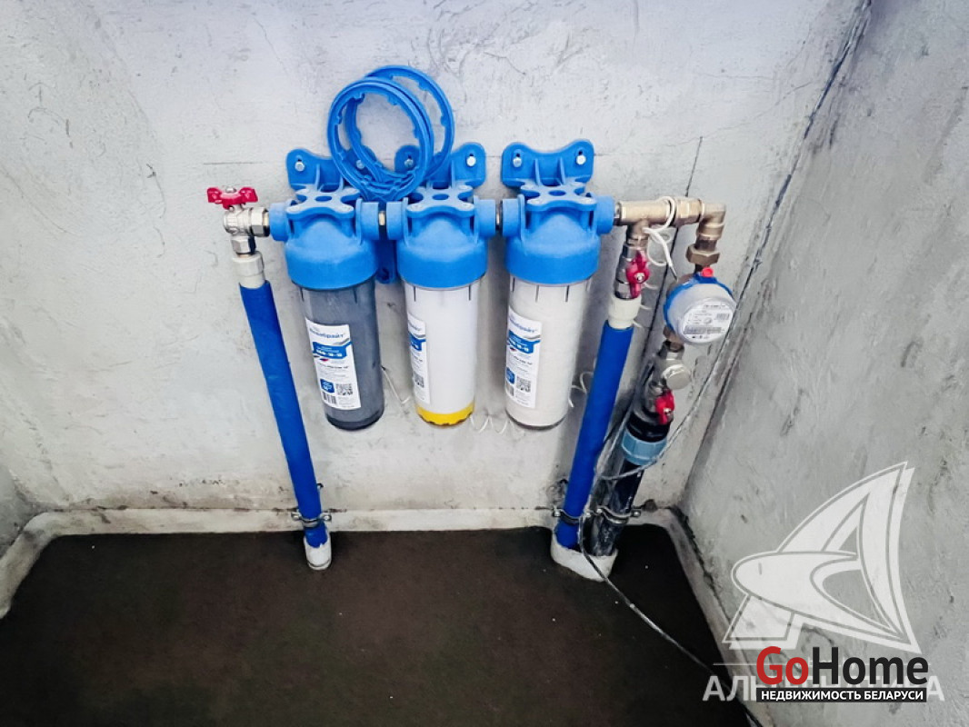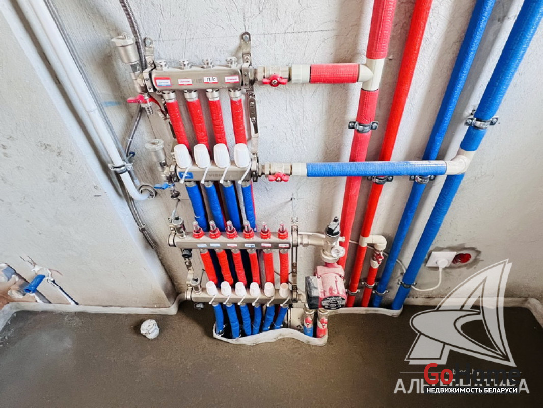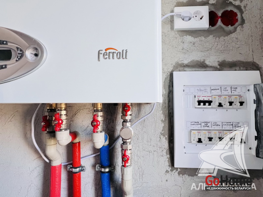 Коммуникации: отопление - газовый котел, газ - централизованный (в доме), водоснабжение - централизованный водопровод, электричество - централизованное, канализация - централизованная.