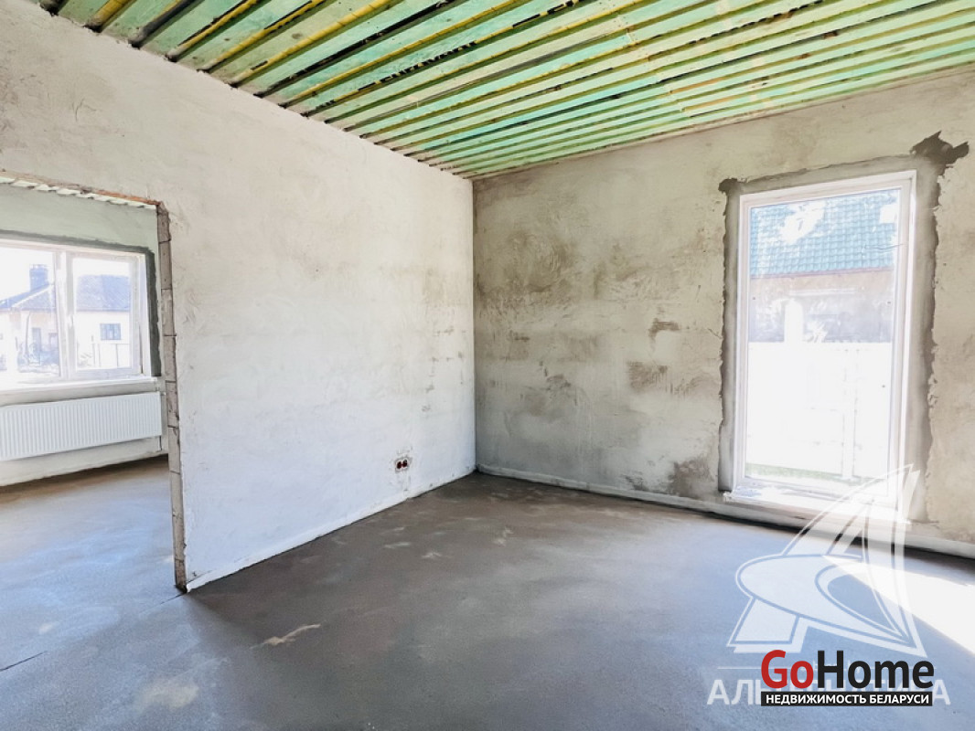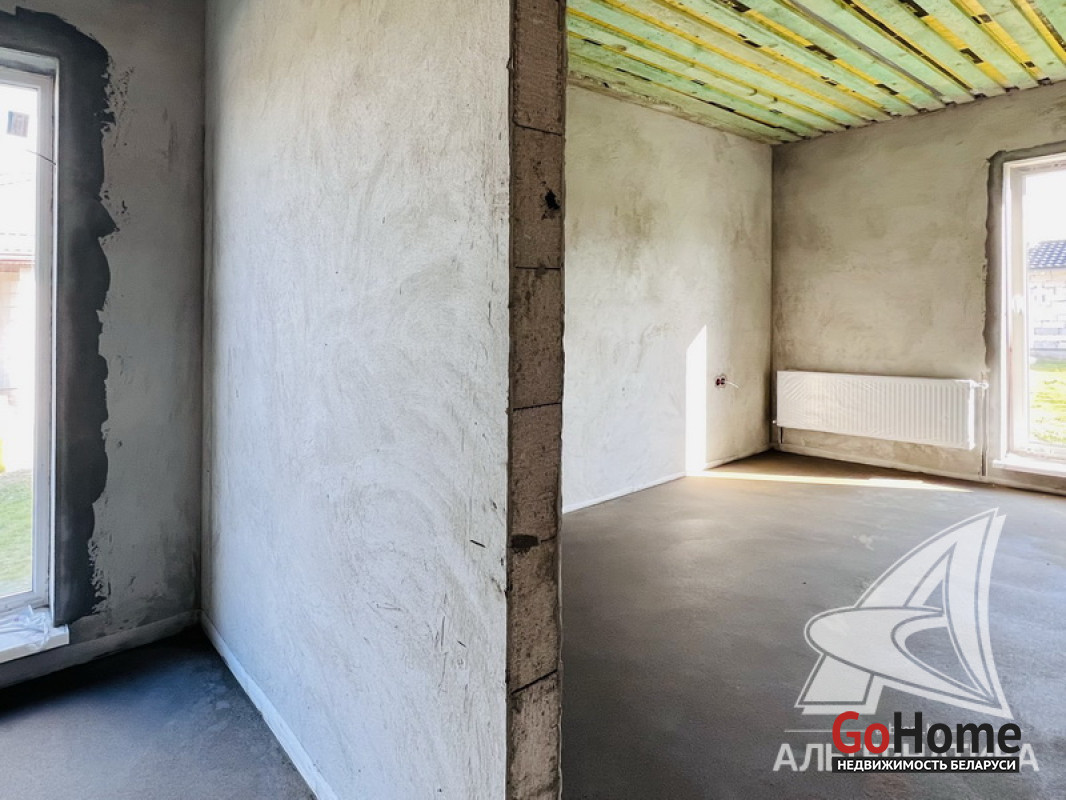 Жилой дом под чистовую отделку в г.Бресте. 1 этаж. Общ.СНБ - 108,4 кв.м, общ.- 108,4 кв.м, жил.- 65,0 кв.м, кух.- 10,0 кв.м. 4 комнаты, высота потолка - 2,80 м.