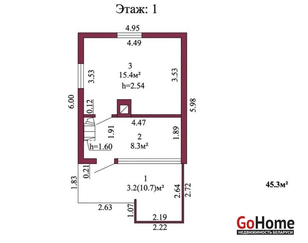 Площадь дома-45,3 м2