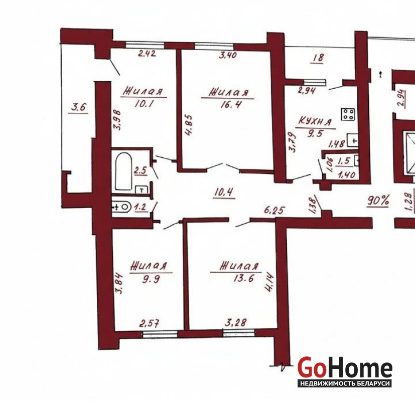 В продаже четырехкомнатная квартира по ул. Горького, 88, 1976 года постройки. Площадь по СНБ 81.88 кв.м., общая 78.1. кв.м., жилая 50. кв.м, кухня 9.5 кв..м. Две застекленные лоджии. Внутренние стены - кирпич. Наружные – кирпичные и ж/б панели. Подвал-кладовка находится на 1-ом этаже (серая дверь на фото), отдельно от других квартир. Стеклопакеты. Хорошее месторасположение, рядом центр города, развитая инфраструктура, сквер-парк для прогулок, Пышки, отличная транспортная развязка, рынок Корона, ФОК Аквацентр, медицинский университет и др.