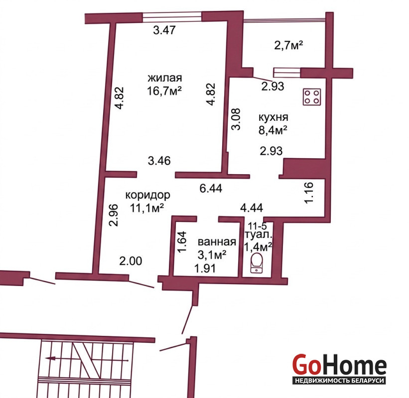 43,4 м2 общ/жилая 16,7 м2/8,4 м2